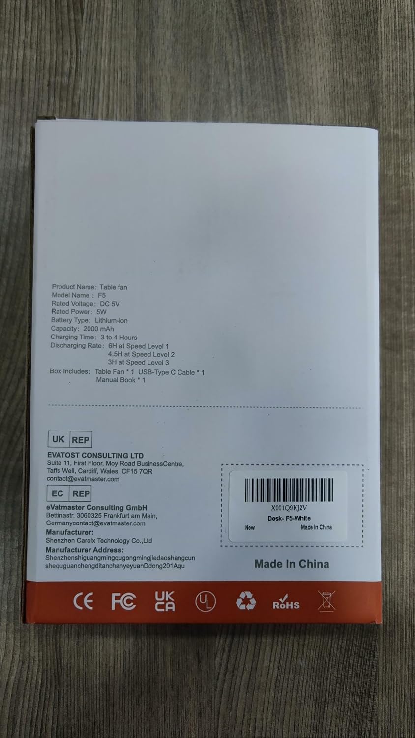 🐳Long-Lasting Battery🐳With a powerful 2000mAh rechargeable battery, this desk fan can last for 4-20hours on a single charge. Take it with you on the go or keep it on your desk for extended periods of use.