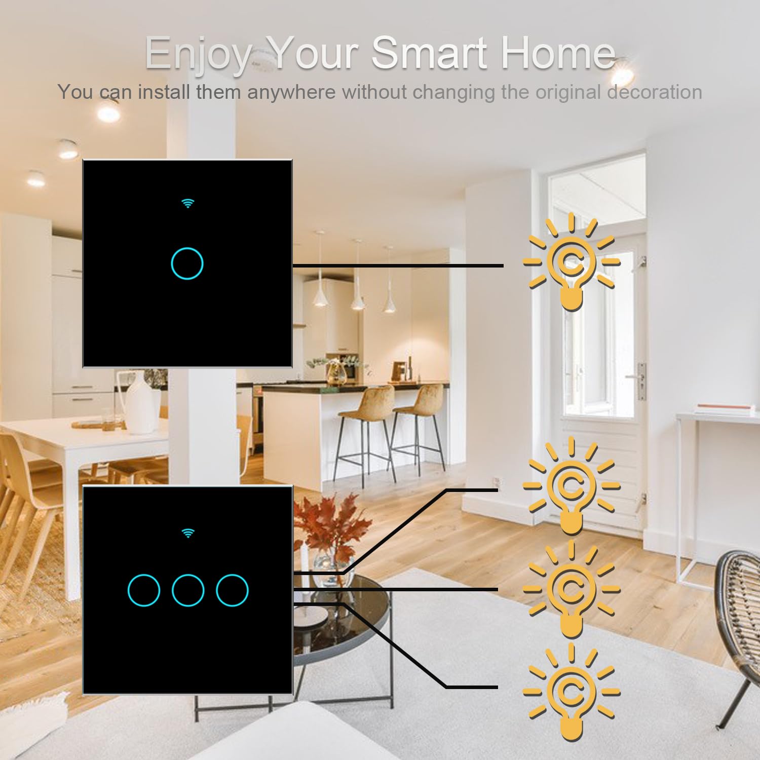 Note & Warranty: Bkiyougo Smart Switches for lights must be switched off during installation.Only after the glass plate has been installed,you can turn on the power,otherwise it will not work properly.Provide 1-year free warranty service.