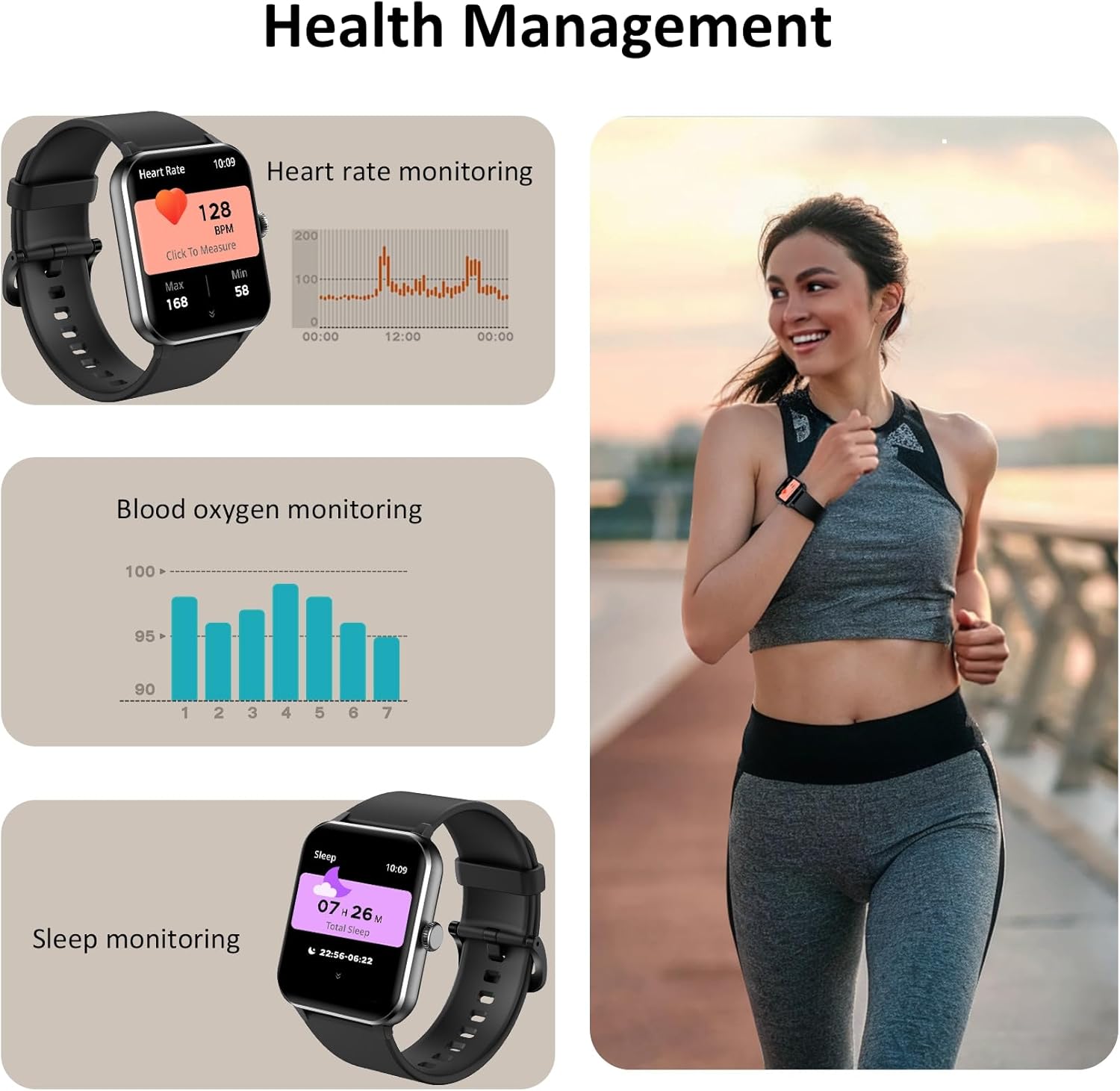 👍【Comprehensive Health Monitoring】This smart watch built-in high-performance optical sensor that can track your heart rate changes in real time 24 hours a day, ensuring that you always understand your heart health. Automatically tracks your sleep quality, records the duration of deep and light sleep and wake-up time, and helps you optimize your sleep habits. It can also accurately detect blood oxygen saturation to help you understand your body’s oxygen level and help you live a vibrant life.
