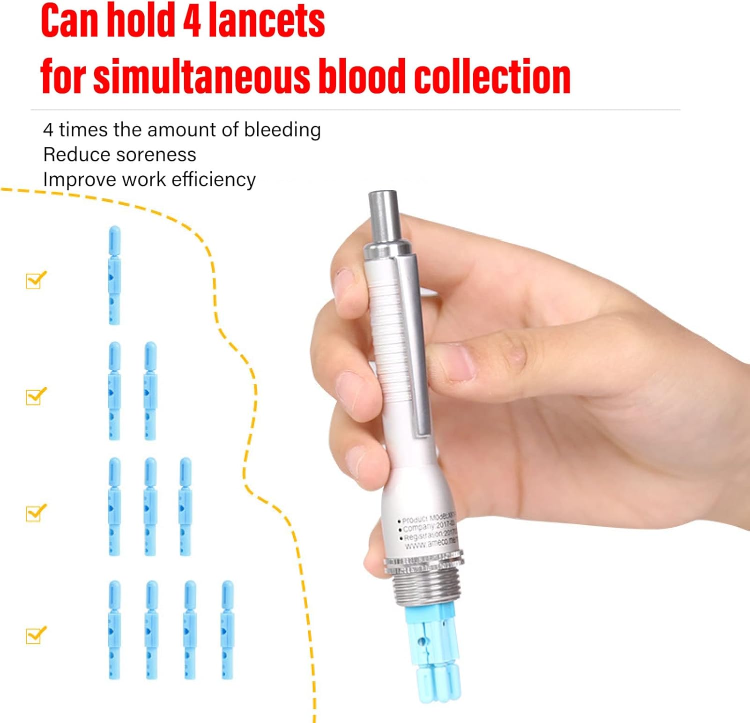 Simple and Convenient Operation: With a single needle and the option for multi-needle use, the blood lancing pen is easy to operate and provides a convenient and safe way to collect blood samples. This user-friendly design makes it suitable for home use and allows for hassle-free blood collection.
