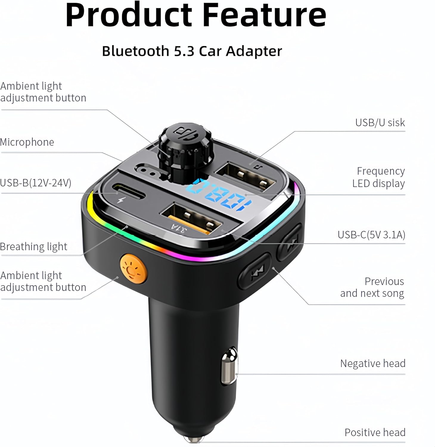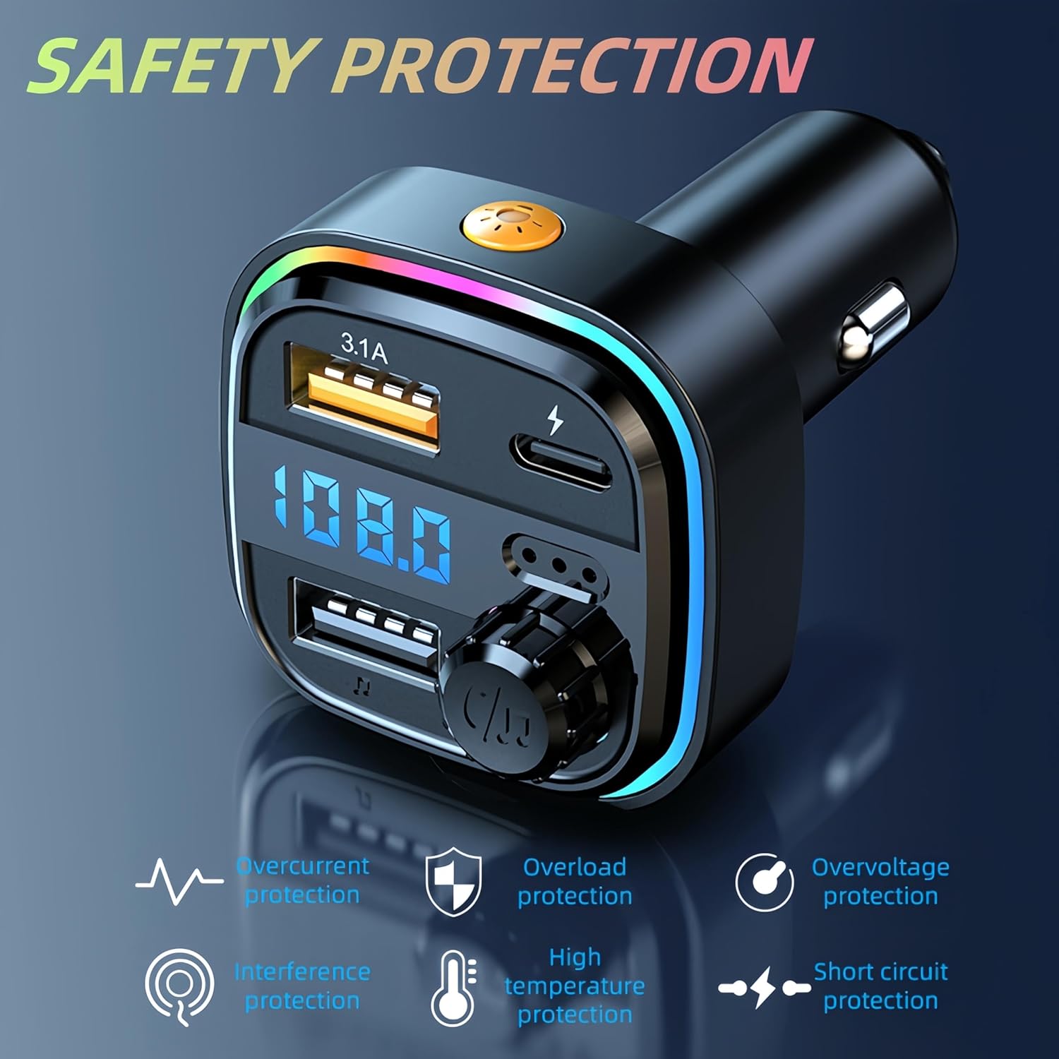 The YCTech Car Bluetooth Transmitter enhances your driving experience with three USB ports (2 USB A & 1 USB-C), allowing for simultaneous charging of three devices. Included is Quick Charge 3.1A and also includes real-time voltage monitoring for safety.You can stream music via Bluetooth or from a USB flash disk. The Hi-Fi deep bass and noise-cancellation technology ensure clear sound for music and calls. Hands-free calling is easy with a built-in microphone and one-button call management.I tried the YCTech Car Bluetooth Transmitter on a recent road trip, and it transformed my car rides. Charging my phone and tablet simultaneously was super-fast, thanks to the Quick Charge 3.1A ports. The Bluetooth connection was seamless, and the sound quality was fantastic, crystal-clear audio with deep bass made my music and calls enjoyable.The hands-free calling feature was a lifesaver, allowing me to manage calls without taking my hands off the wheel. The ambient RGB lights added a fun and cosy vibe to my car interior, and changing colours was a breeze.The YCTech Car Bluetooth Transmitter is a must-have for tech-savvy drivers. It offers fast charging, high-quality sound, and convenient hands-free calling, all while adding a touch of style to your car. Highly recommended for a better driving experience! 🚗🔋🎶✨