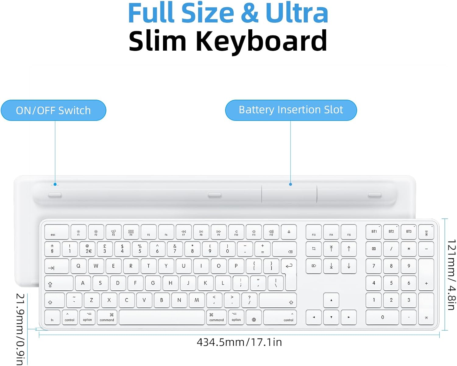 8 reviews for Bluetooth Keyboard for Mac os, OMOTON KB515 Full-sized Wireless Keyboard for Apple MacBook Pro/Air, iMac, iMac Pro, Mac Mini/Pro, Battery-powered, Multi-Device, QWERTY UK Layout (White)