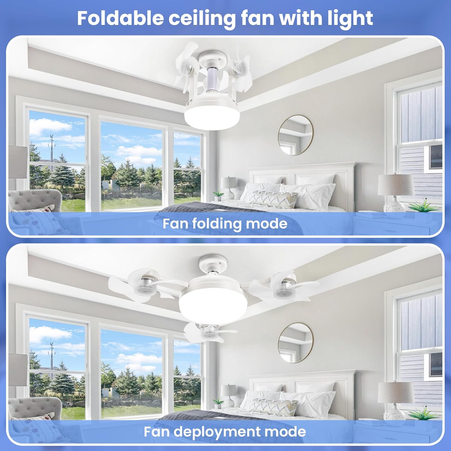 🌟【3 Heads Drone Ceiling Fan】 This fan lights ceiling features a unique three group drone blade design that fits standard E26/E27 screw sockets. No wiring or complicated installation is needed—simply screw it in like a regular light bulb and you’re good to go. More powerful and modern than traditional ceiling fans, it brings a sleek, tech-savvy touch to your space with effortless convenience.