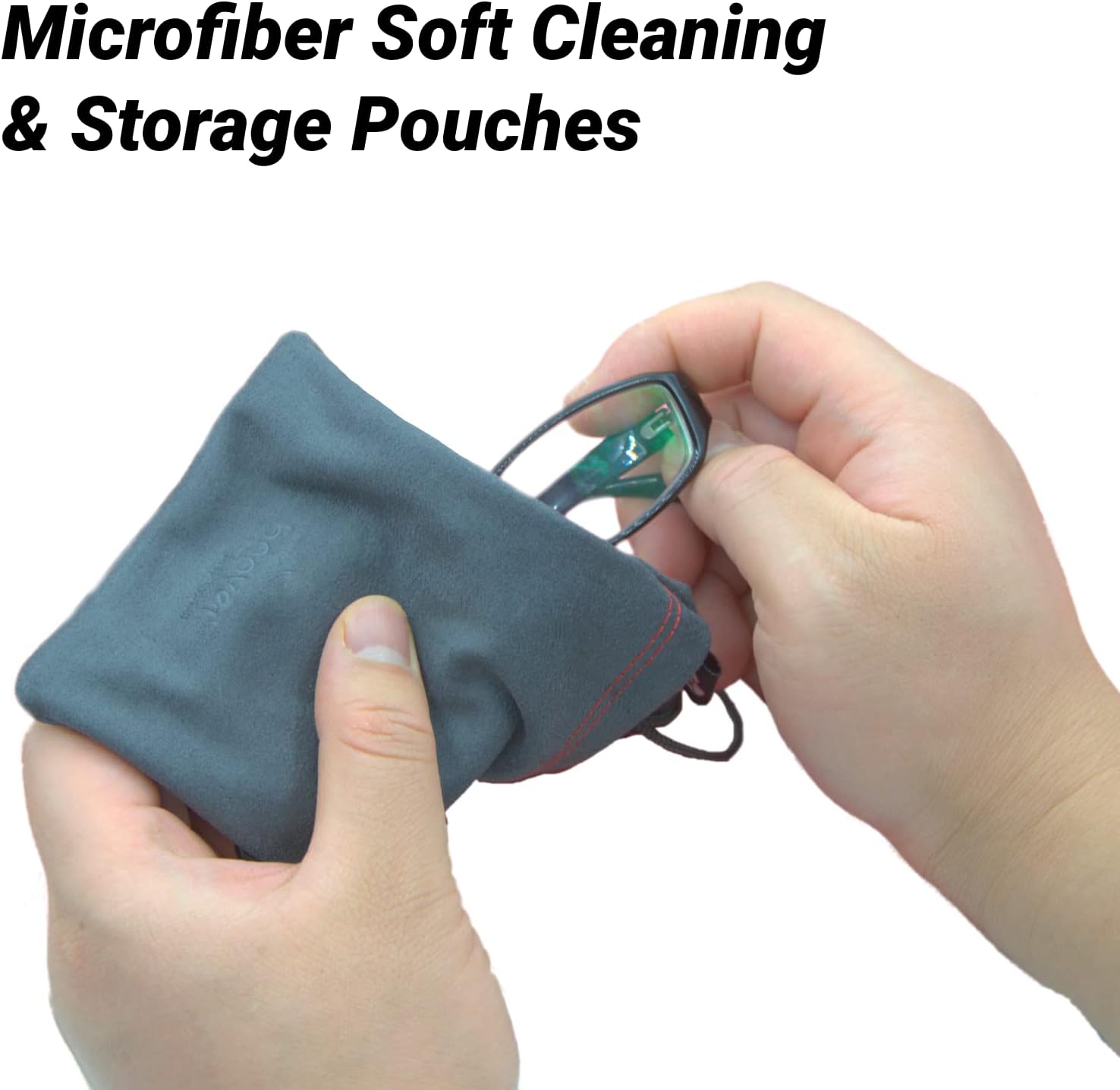 Our soft eyeglass case features a durable, absorbent and soft suede microfiber that will protect the glasses and will not scratch them. It can be used to clean most type of glass, including eyeglasses, sunglasses, camera lenses and filters, as well as screens including cell phone, action cameras.