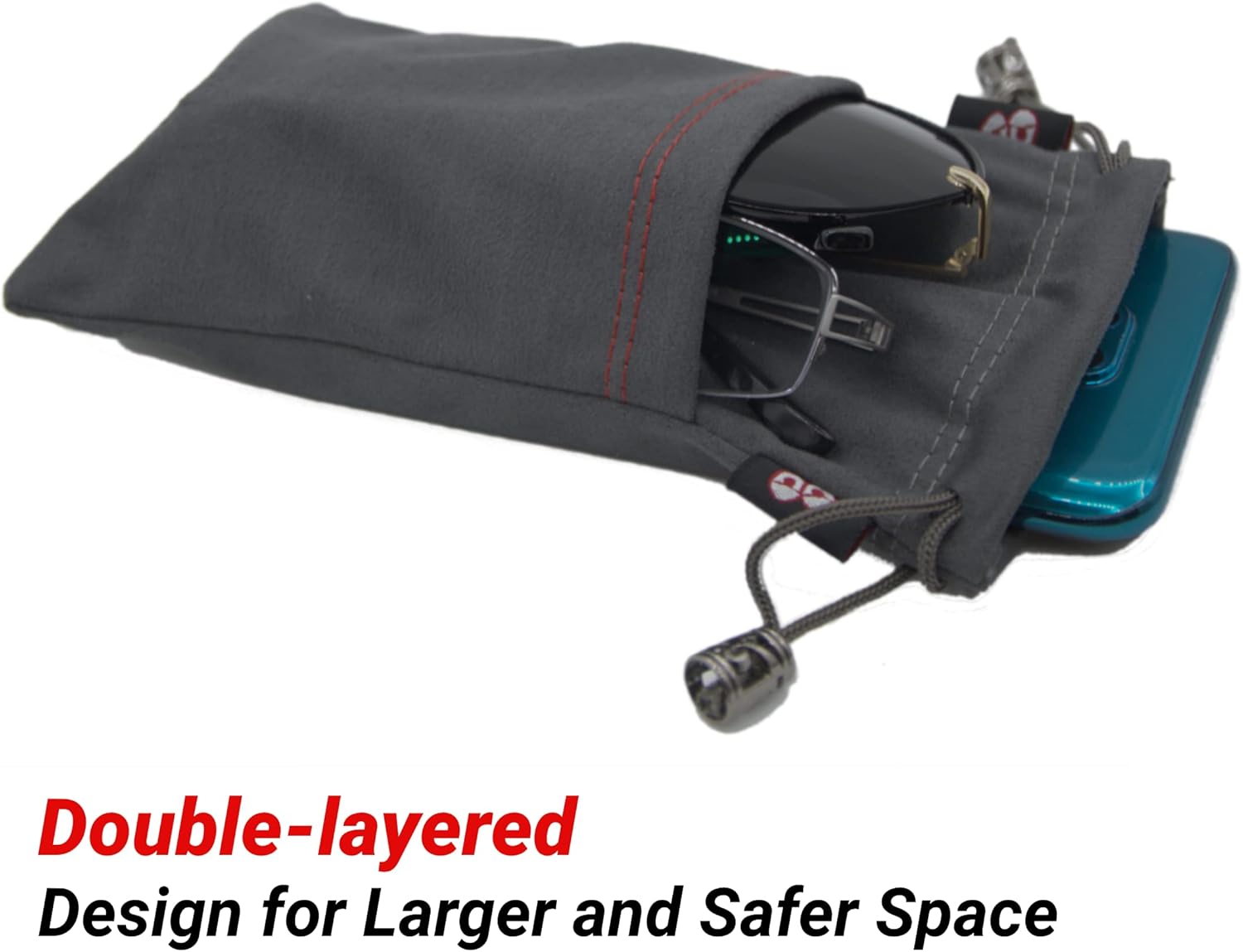 bqover 2 Pack Double Eyeglasses Drawstring Pouch,Large,Storage & Cleaning, With Removable Adjustable Strap,Microfiber Soft Glasses Case,Cell Phone Storage Bag,Safe for Sunglass, Smartphones,Jewelry