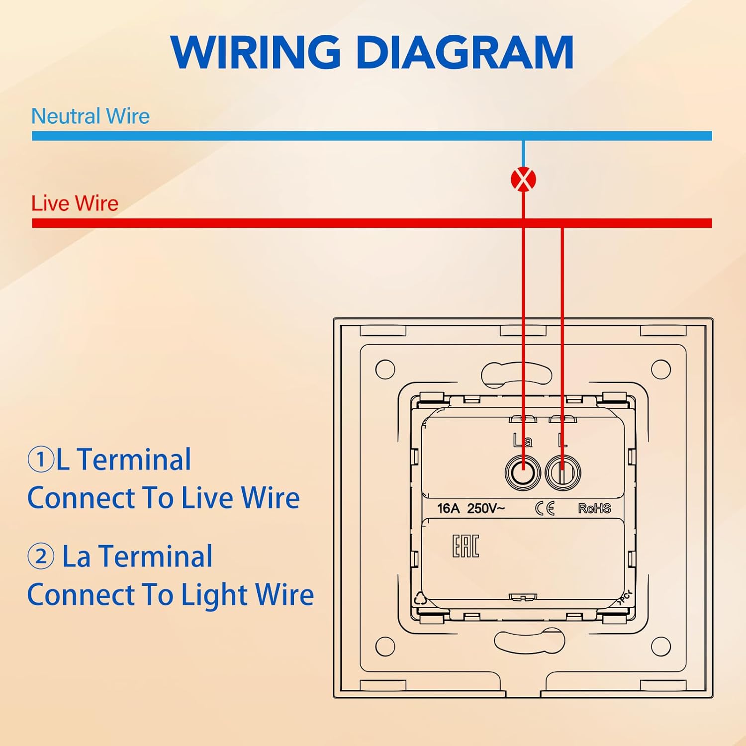 My wall light switch back box is quite shallow and the switch unit did not fit. My home electrical installation is 1960’s UK and the light switch back box is simply too shallow for this unit to fit. Luckily, I had a standard UK light switch in my supplies and reverted to that. I can’t really criticise the switch itself. It seemed OK quality wise.