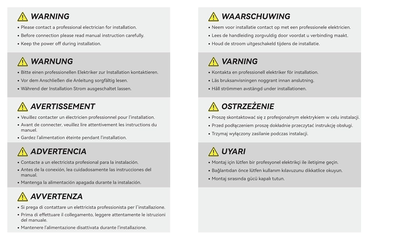 【NOTE】: 1–Keep The Power Off Until Finishing The Installation. 2–★Neutral wire is required, 3–★Works with 2.4GHz WiFi networks ONLY!