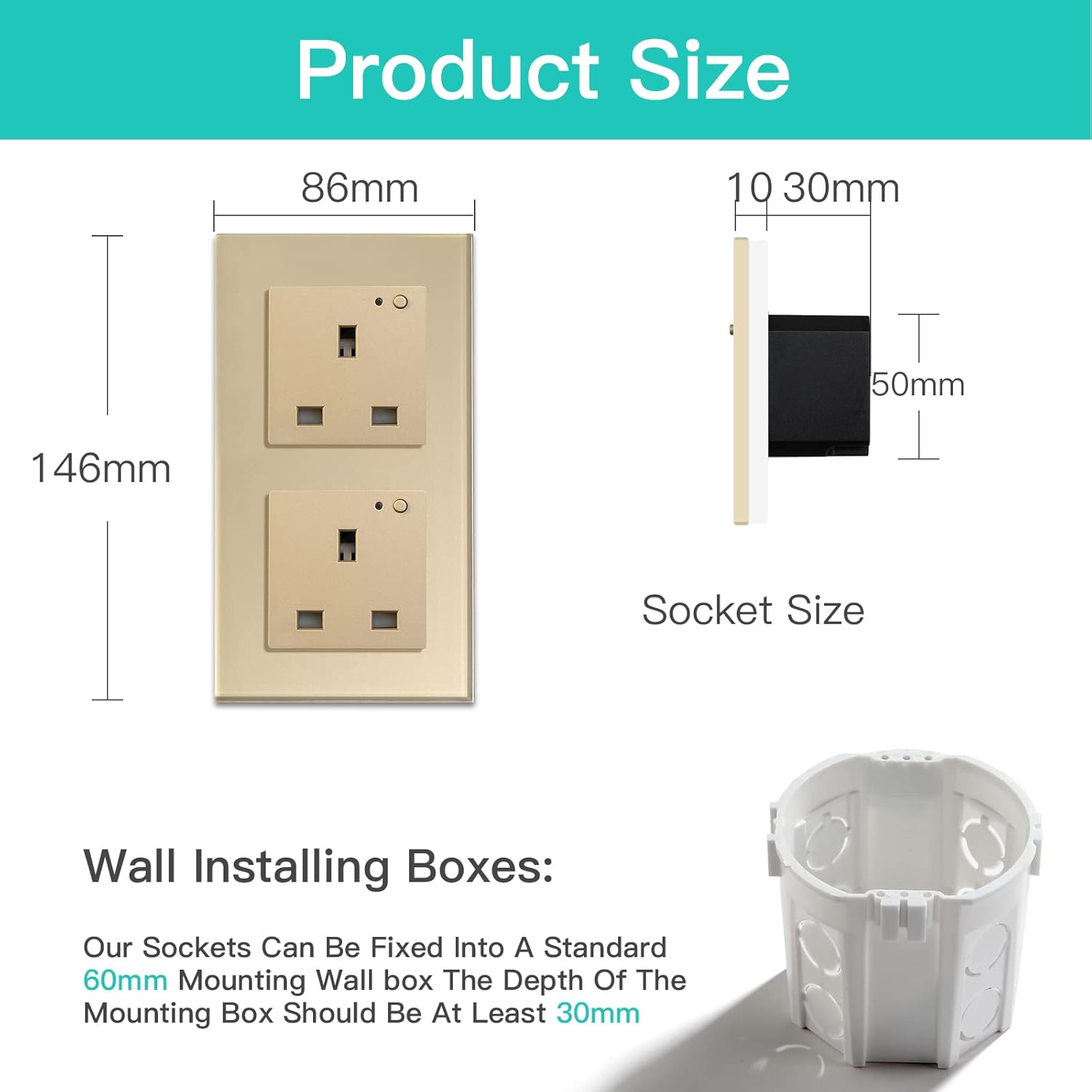 13 reviews for BSEED Smart Socket, WiFi Outlet Socket Work with Alexa and Google Home, Smart Life App Remote Control, Smart Timer Wall Sockets, No Hub Required, 2.4Ghz Only,13A,2 Gang Gold