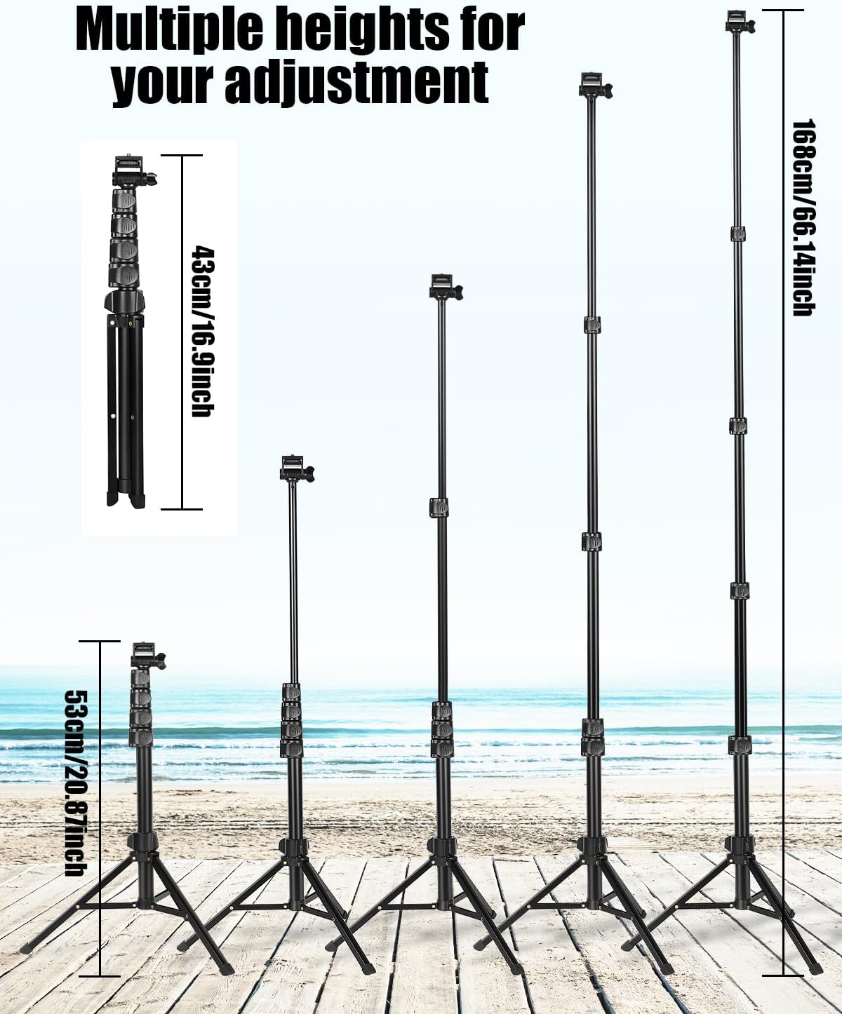 【2-IN-1 SELFIE STICK AND TRIPOD】 Extendable from 18″ to 66″, this compact travel tripod combines a selfie stick and stable stand for vlogging, live streaming, and group photos. Folds to 18″ for portability