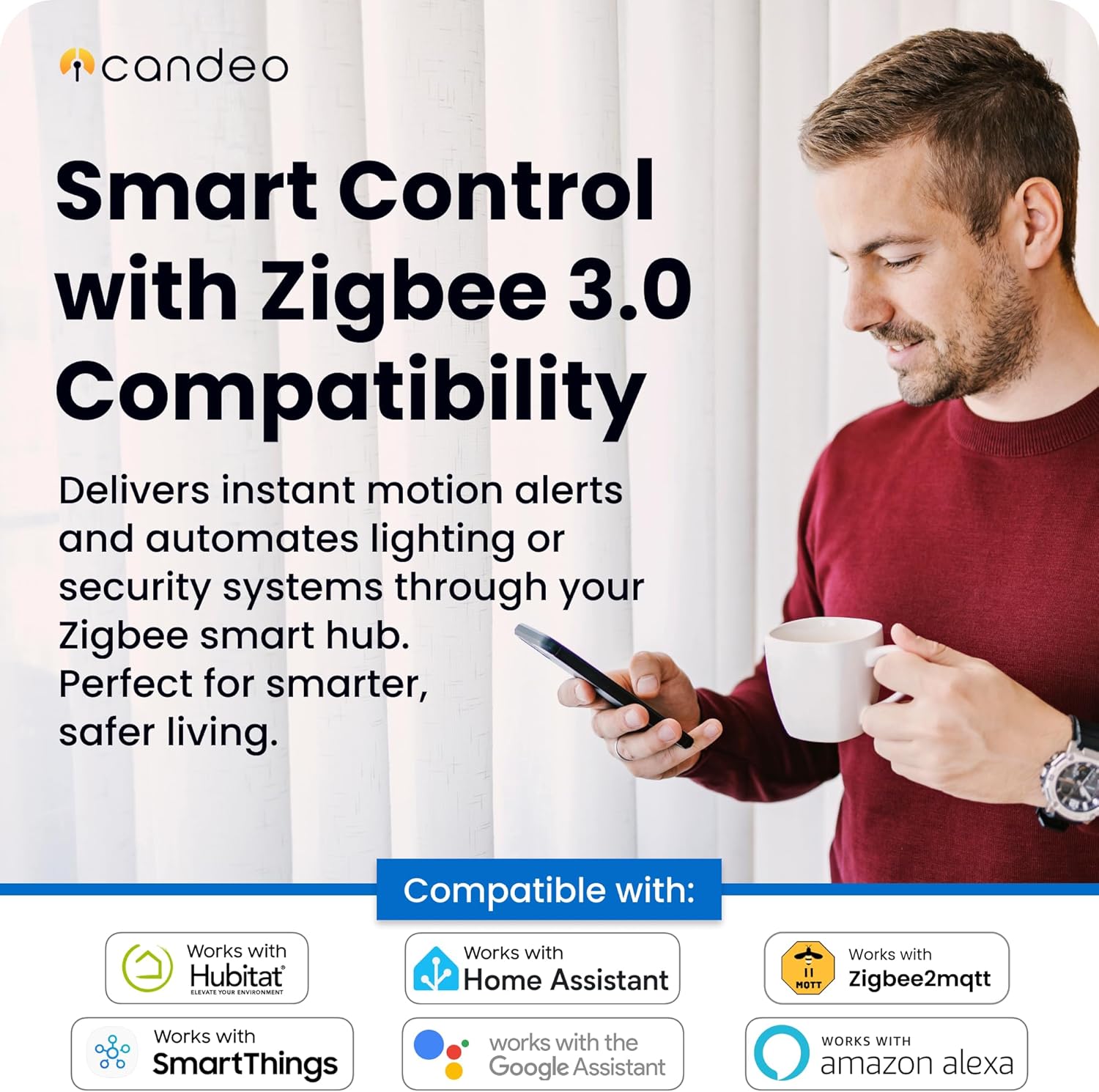 8 reviews for Candeo Zigbee Motion Sensor, White | PIR Smart Home Movement Detector with a Wide Range | Zigbee 3.0 Compatible with SmartThings, Home Assistant, zigbee2mqtt | Pet-Friendly, Long Battery Life