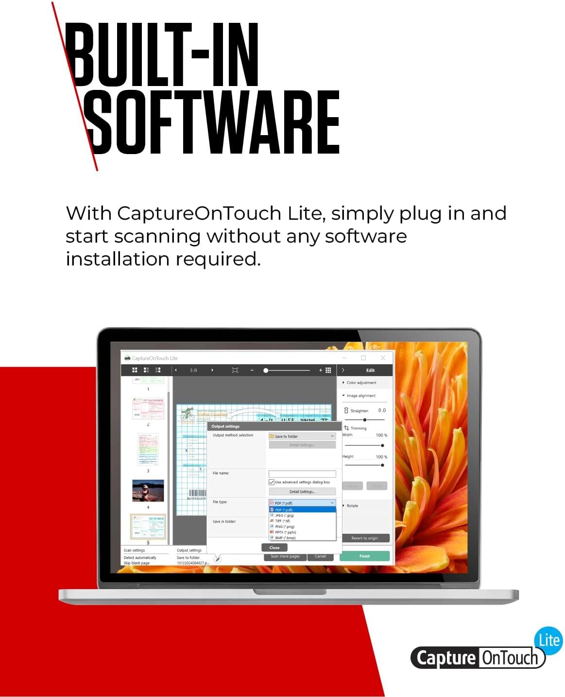 EASY SET UP: With unique Canon CaptureOnTouch Lite software – simply connect and scan in a matter of seconds without the need to install any driver or software application