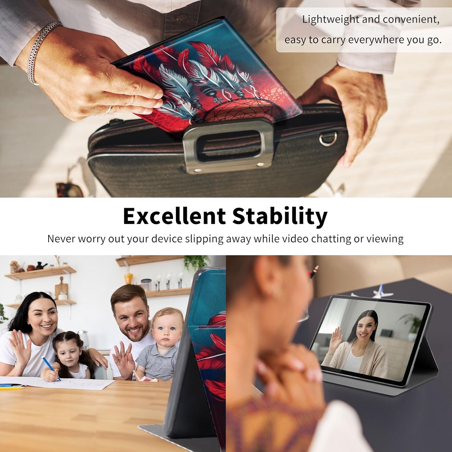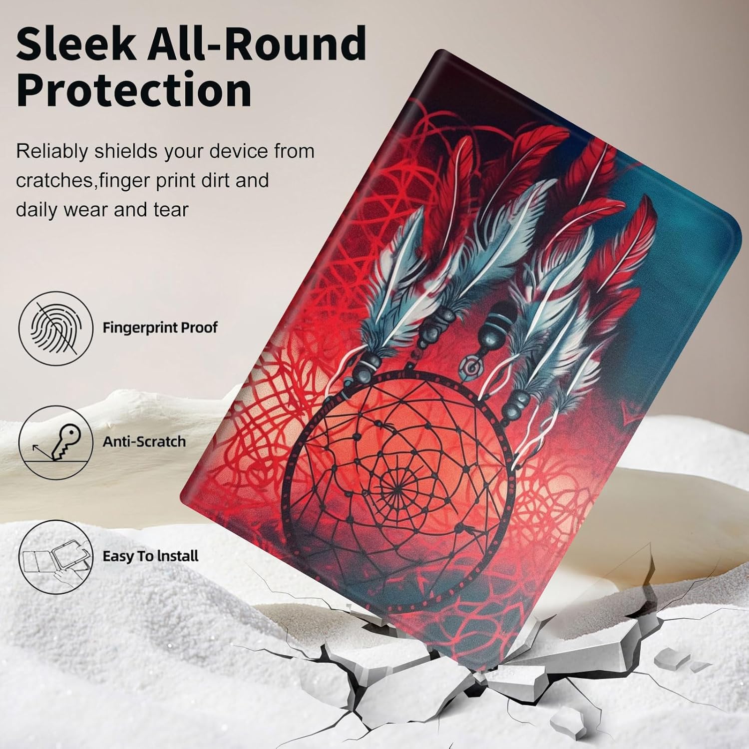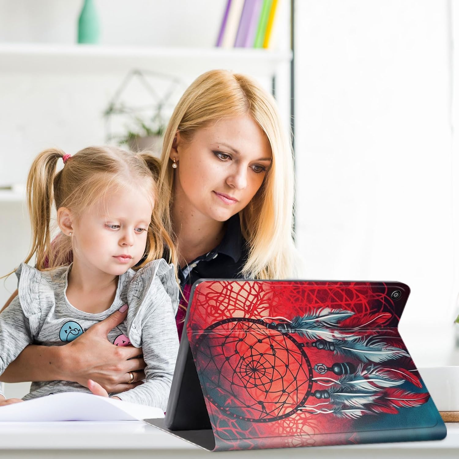Case for Amazon Fire HD 8 Tablet (8th/7th/6th Generation 2018/2017/2016 Release),with Auto Wake/Sleep PU Leather Multi-Angle Stand Smart Cases for Fire HD 8 6/7/8th Gen 8″,Dream Catcher Red Feathers