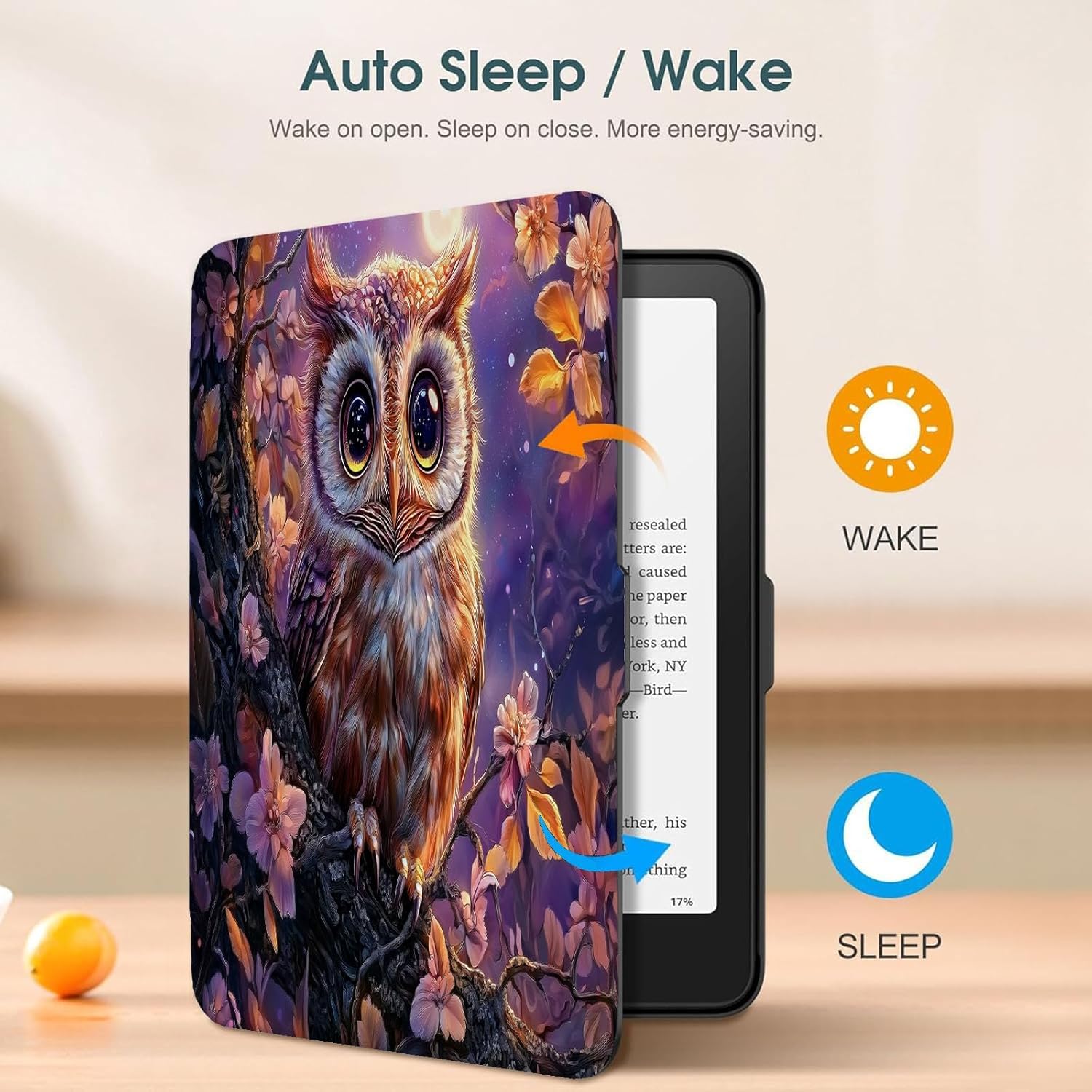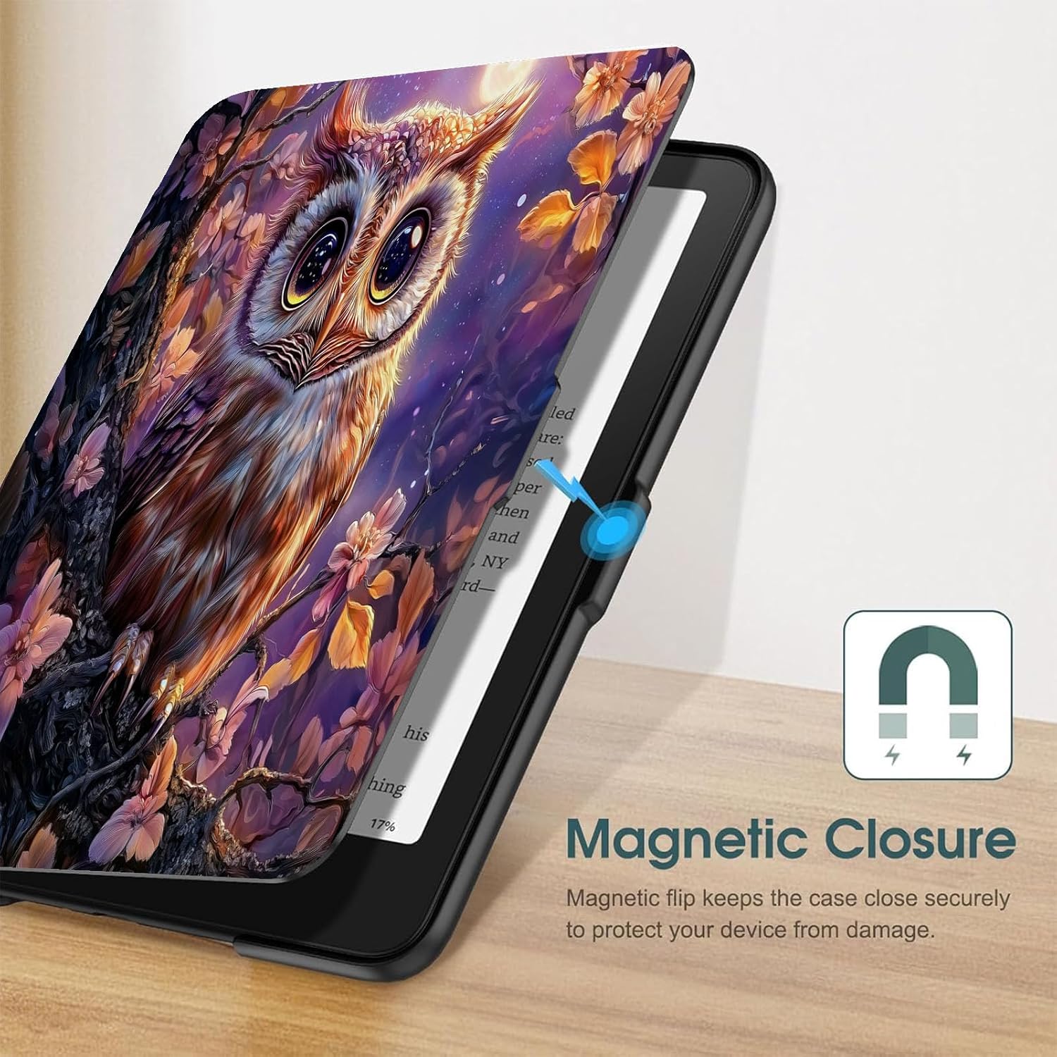 Versatile:Easy clip-on application. Magnetic clasp ensures cover is securely closed, secures your device without straps covering the front.Built-in magnetic strip provides sleep / wake feature, automatically wakes or puts your device to sleep(Make sure your E-Book Reader has this function and it needs to be set up in advance.)
