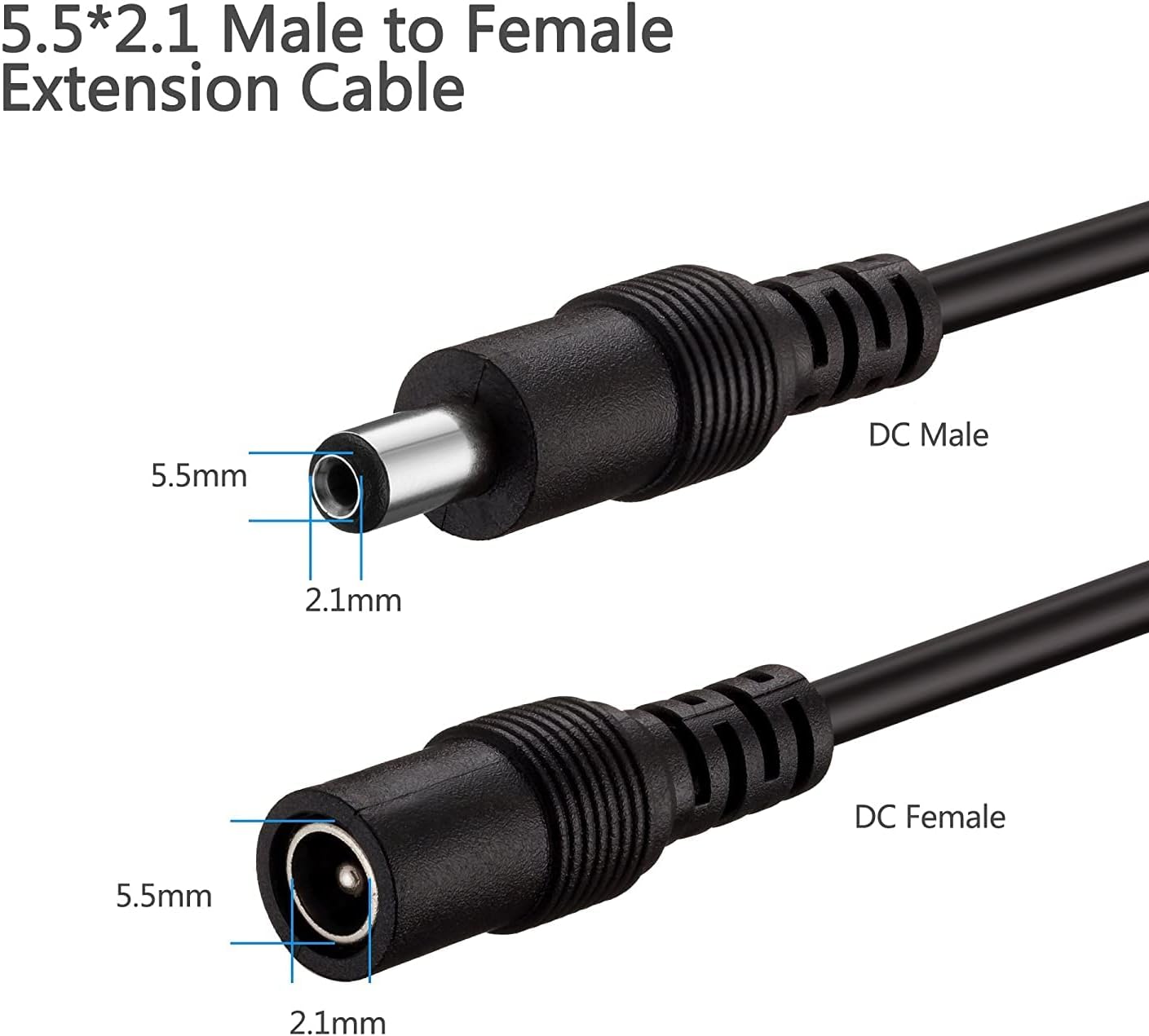 【STRONG COMPATIBILITY】2.1 x 5.5mm 12V DC Extension cable, Male – Female connectors. The extension cable is suitable for any application that requires DC 12V input and accept 2.1mm x 5.5mm plug. (Not Compatible with other sizes)