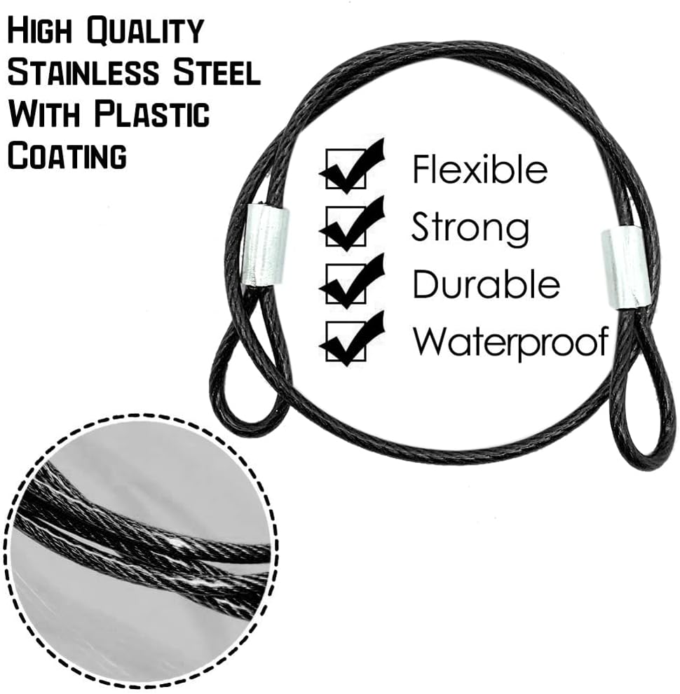 More Occasions:Shrink tubing protect you from scratching by metal hoop, plastic vinyl coating is duable and no fade.Suitable for Go Pro Hero Camera, any other camera systems or electronic devices you need to secure.Use and Lock your padlocks. Loop around luggage, bags, carabiner, suitcases, tool boxes and so on.