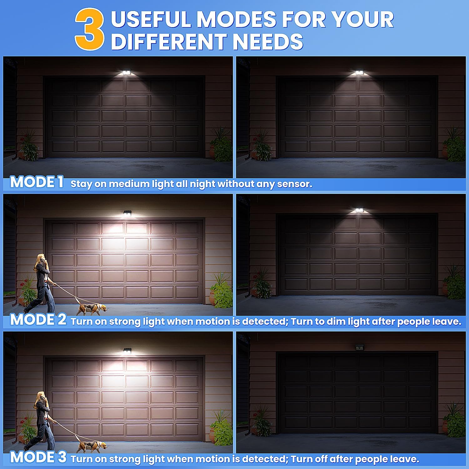 【3 Adjustable Lighting Modes】 Select from three lighting modes – Bright Mode, Dim Light with Full Brightness when motion is detected, or Constant Dim Light for energy-efficient illumination. This flexibility allows you to choose the ideal lighting solution for your outdoor space.