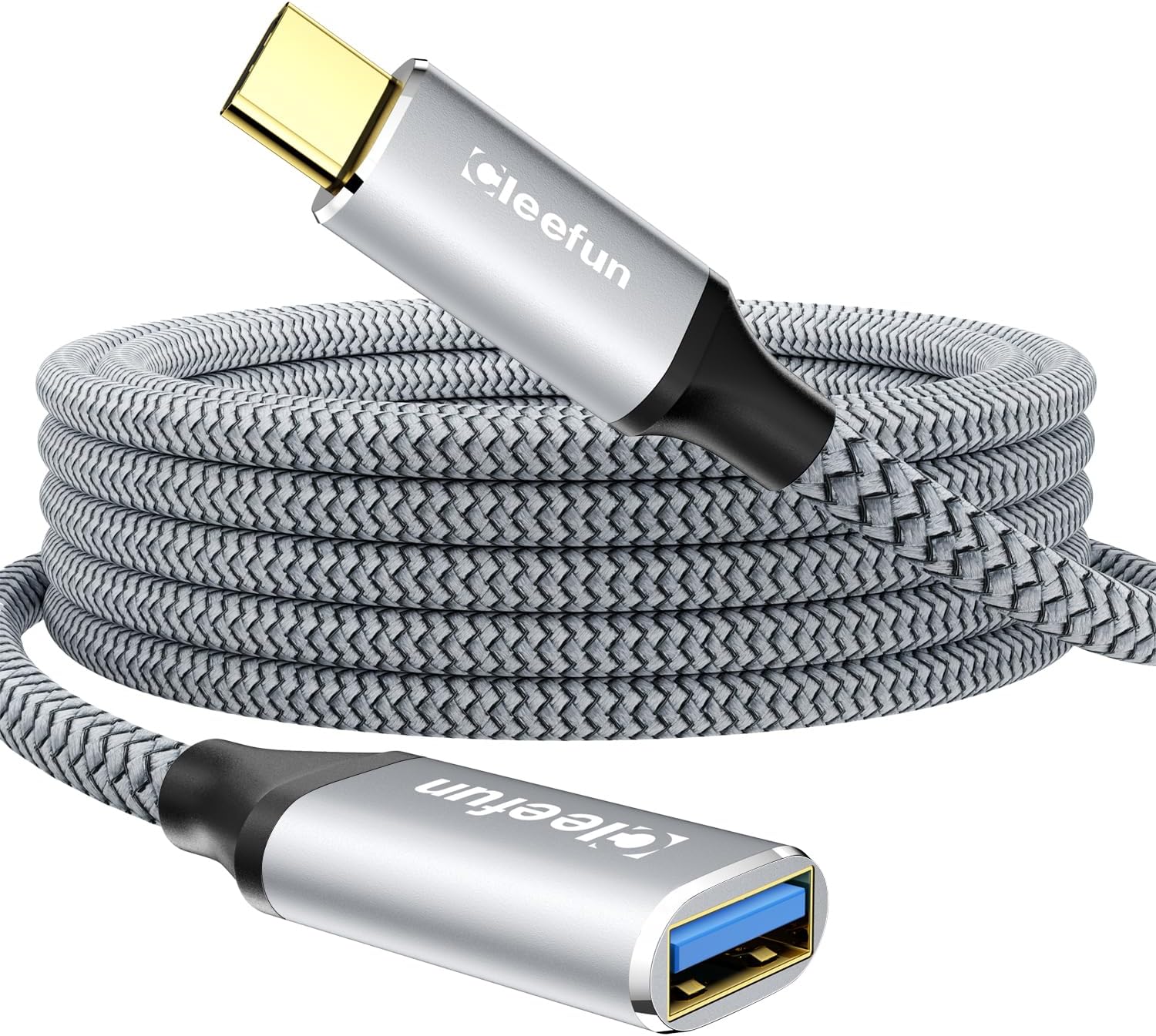 CLEEFUN USB C to USB 3.0 Adapter 1m, USB C Male to USB Female Adaptor OTG Cable 5Gbps for MacBook iPad Pro/Air,iPhone 15 16 Plus Pro Max, Galaxy S24/S23/S22, Pixel, USB-C Laptop Tablet, Grey
