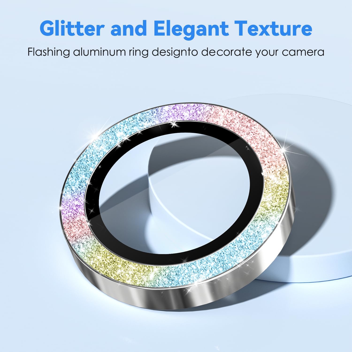 【Glitter Premium Texture】The lens protector is designed with glitter rings, the glitter refracts under the sunlight or light to give a streaming luster, different colours of glitter rings to meet your personalized needs, making the phone lens more elegant and beautiful.