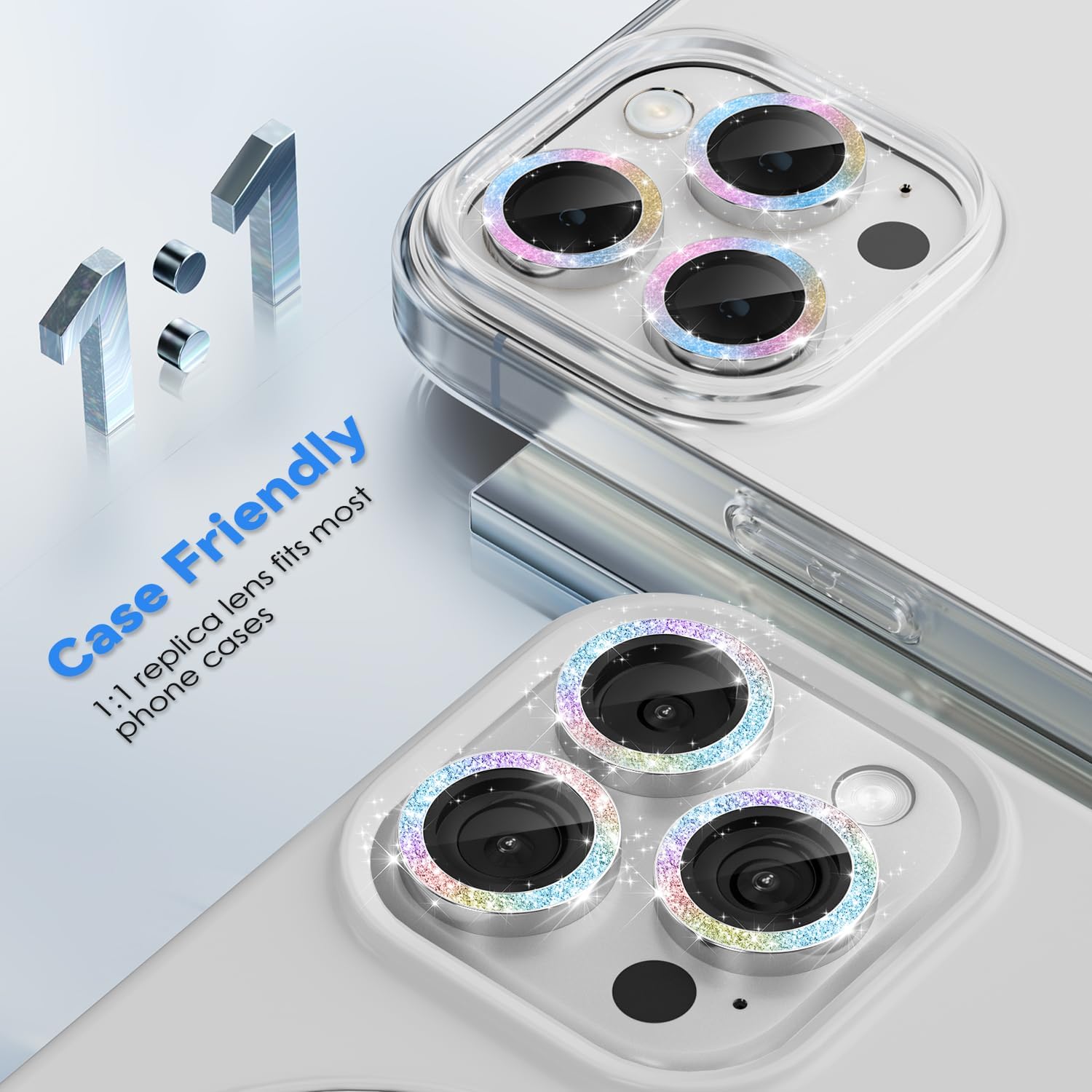 CloudValley for iPhone 16 Pro/iPhone 16 Pro Max Camera Lens Protector Bling, [Glitter Decoration] Ultra-HD Tempered Glass Cover, Metal Lens Screen Protective Ring Accessories,Sparkle