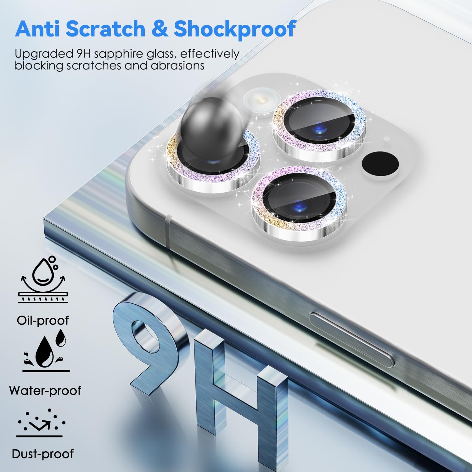 13 reviews for CloudValley for iPhone 16 Pro/iPhone 16 Pro Max Camera Lens Protector Bling, [Glitter Decoration] Ultra-HD Tempered Glass Cover, Metal Lens Screen Protective Ring Accessories,Sparkle