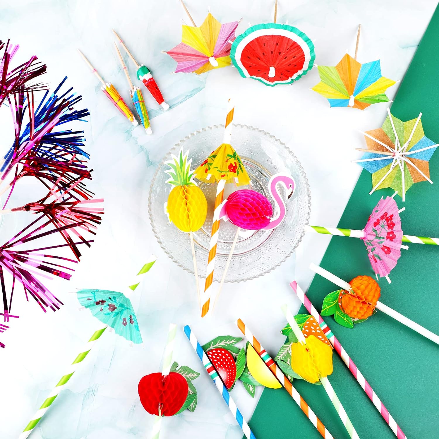 【WIDE APPLICATION】Our cocktail decorations not only suitable for Hawaiian parties, summer pool parties, beach parties, birthday parties, theme parties, etc., but also suitable for bars, restaurants, fruit shops, etc., perfect for decorating food and drinks and creating a fun atmosphere.
