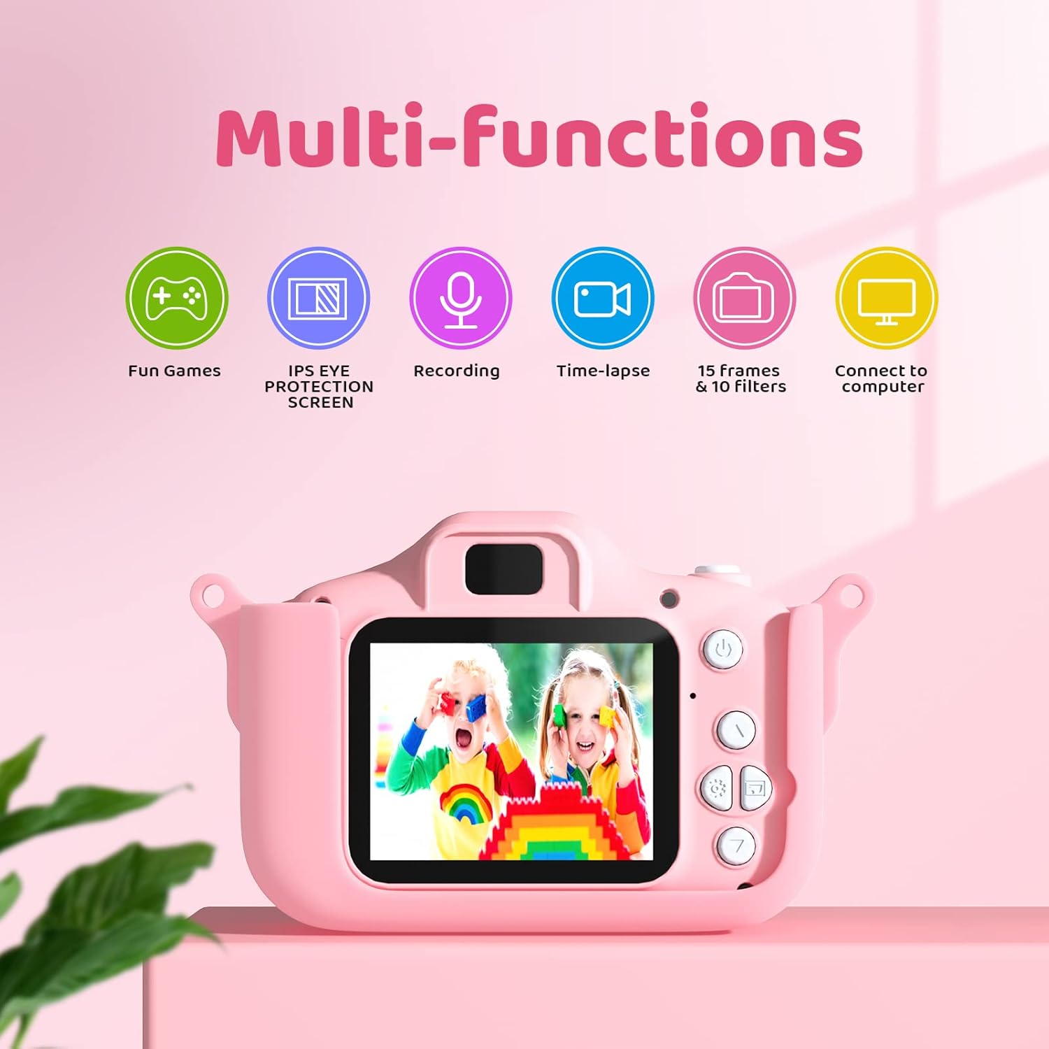 Cocopa Kids Camera Digital Camera for 3-12 Year Old Girls,1080P HD Video Camera for Kids with 32GB SD Card/2 Inch IPS Screen, Birthday Christmas Toy Gifts for 3 4 5 6 7 Year Old Girls (Pink)