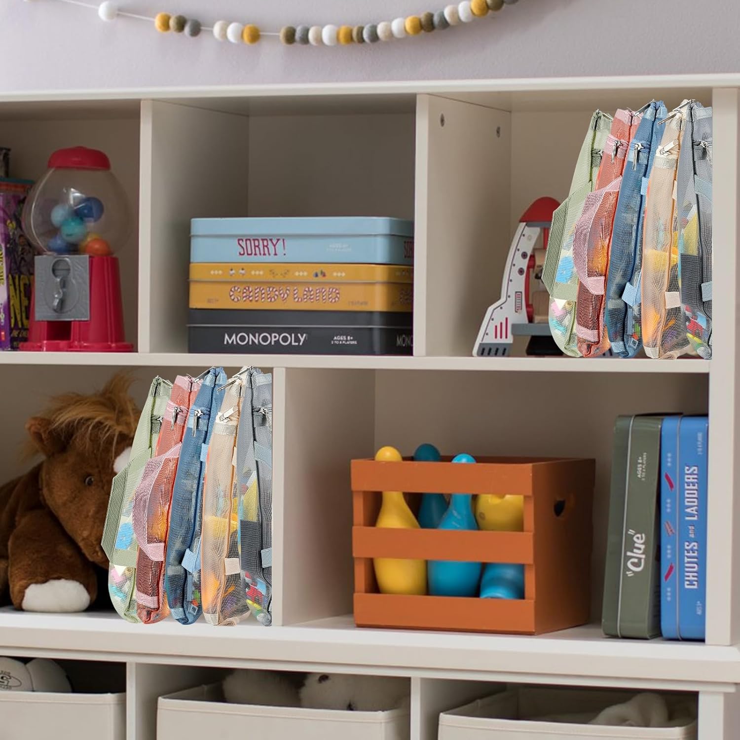 Durable Material: Durable mesh nylon makes this toy storage organizer bag resistant to tearing and sturdy. The thick mesh fabric is strong, safe, and odor-free. A set includes 10 storage bags in 5 different colors. The strong metal zippers are not easily breakable, ensuring a long lifespan.