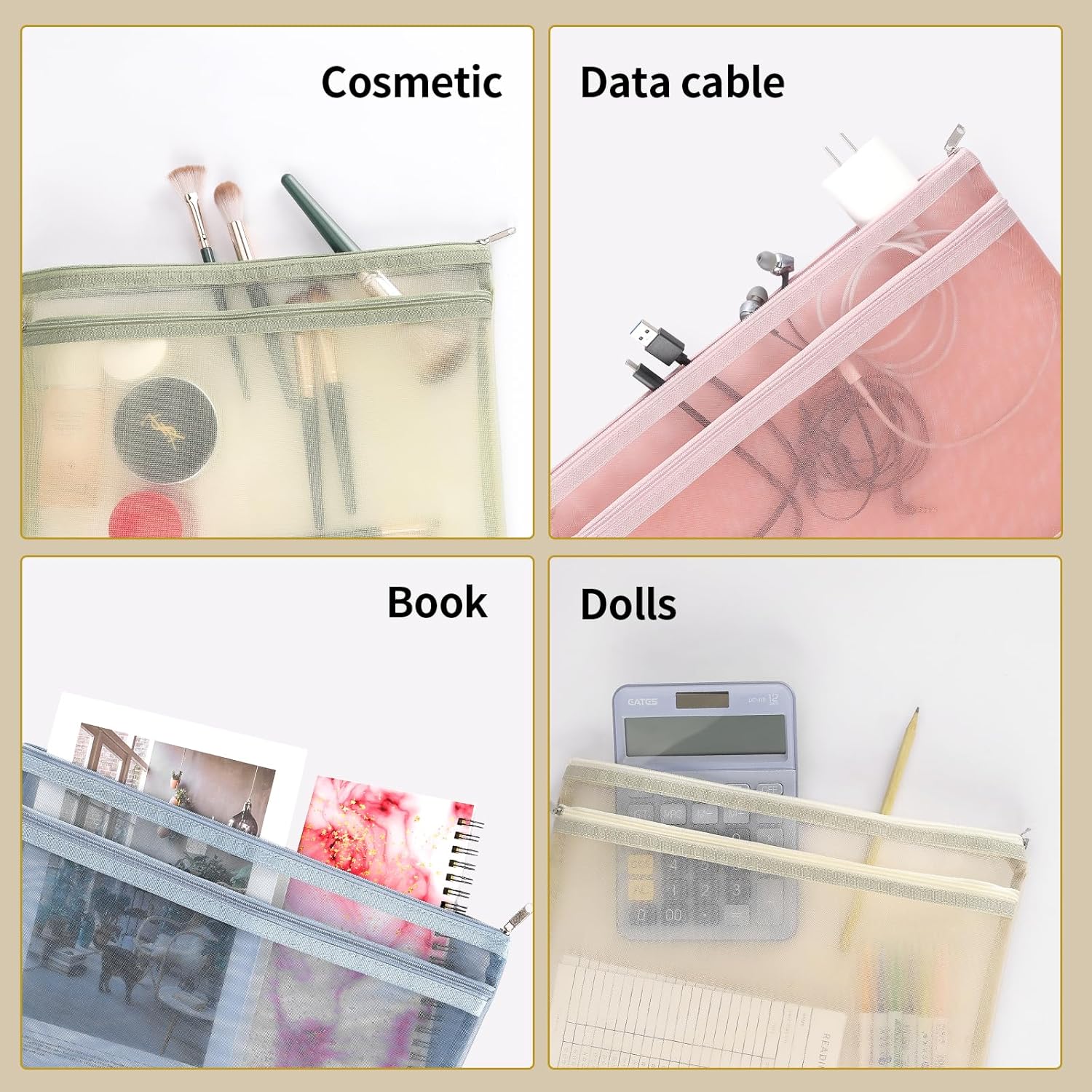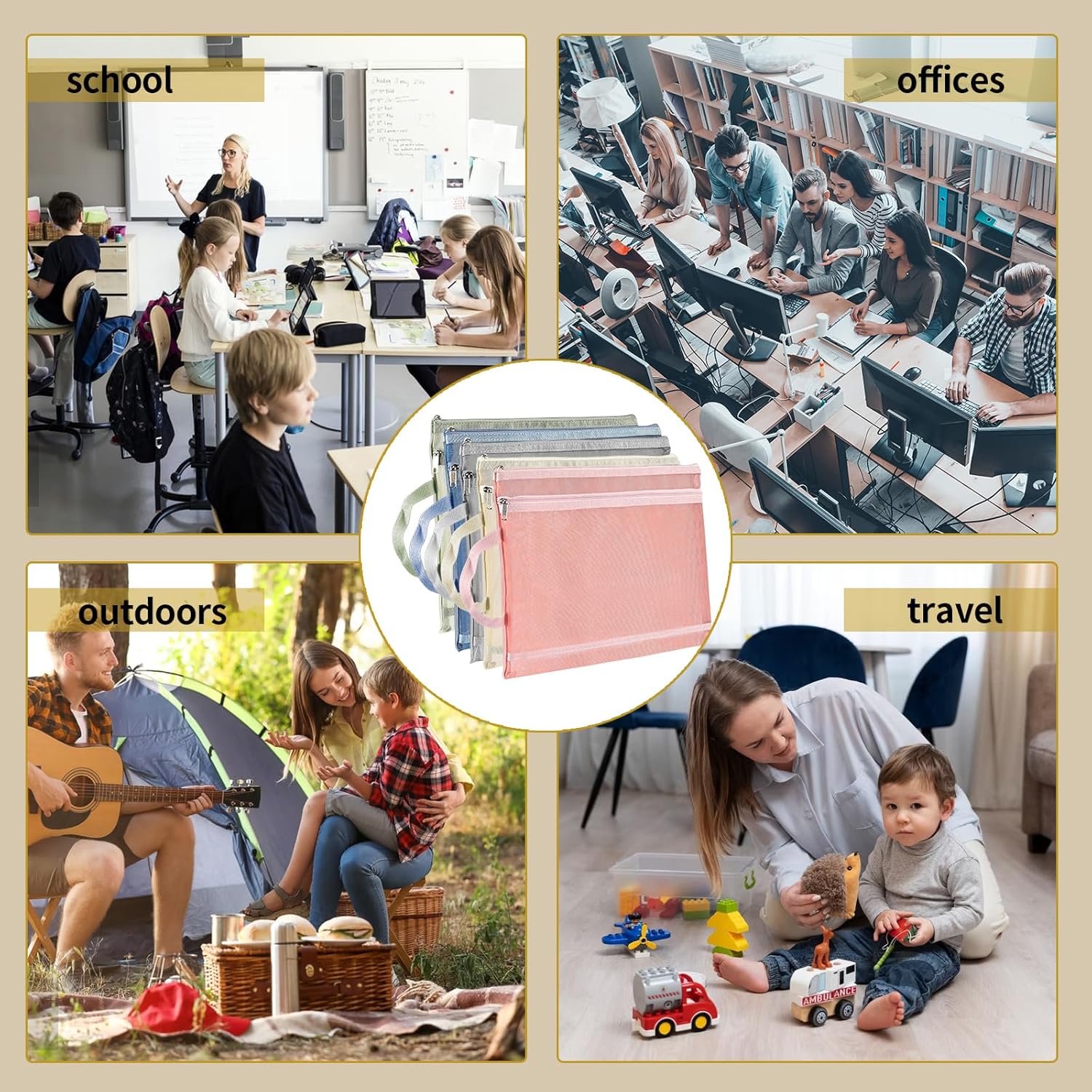 Colored Mesh Zipper Pouch Bags, 10pcs A4 Double-Layer Nylon Puzzle Building Block Sets Toy Storage & Organization, Breathable See Through Zipper Pouch with Handle Pocket for School Office Games
