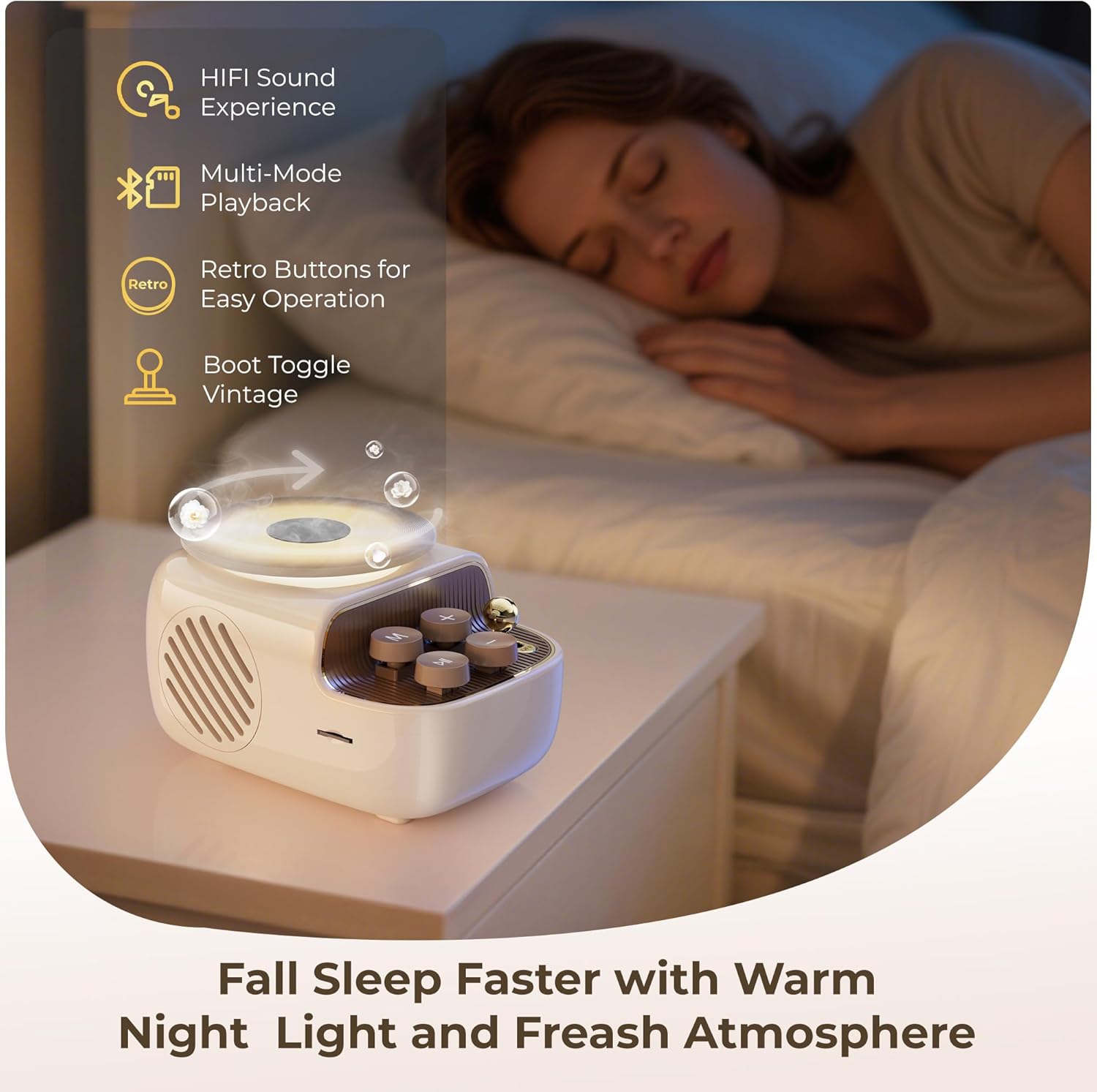【Aromatherapy Sleep Aid】You can drop your desired aroma on the spinning wheel to be able to give you a sleep aid as you fall asleep. The light of the night light is so soft that it will not feel harsh even at night and can keep you company all night long. (Remarks: Aromatherapy oil liquid is not included in the package)