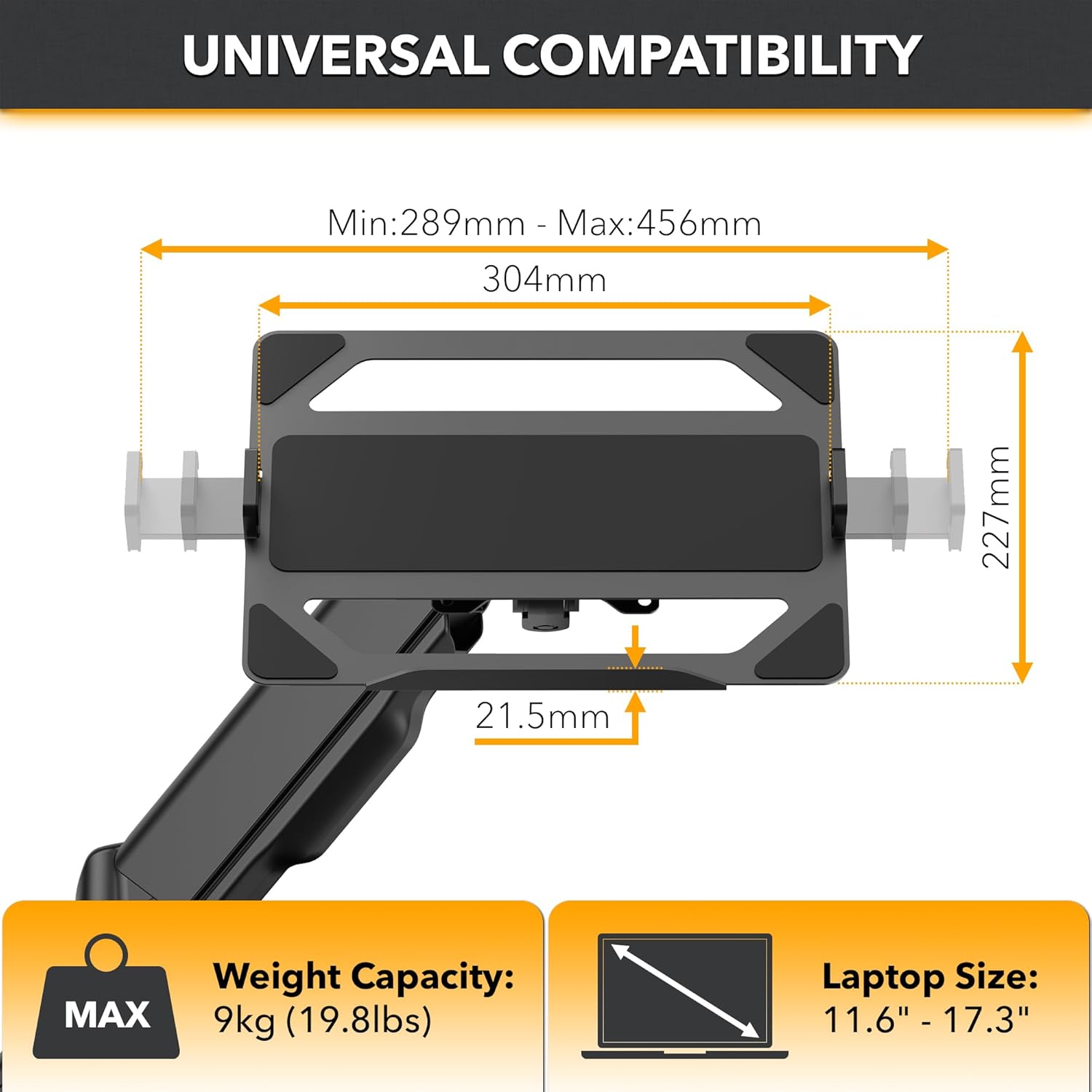 Durable Construction – Made from high-quality steel, aluminum, and plastic, the laptop arm mount is built to last. This mount supports a weight capacity of up to 29kg (4.4lbs to 19.8lbs), ensuring reliable stability for your laptops.