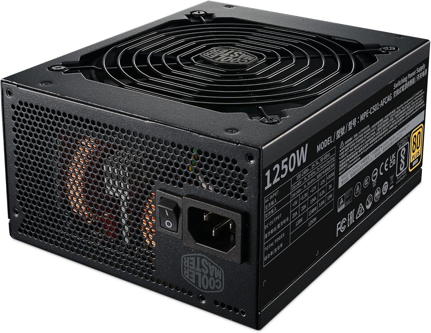 Cooler Master MWE Gold 1250 V2 ATX 3.1 Fully Modular PSU (UK Plug) – ATX 3.1 Support, 80 PLUS Gold 1250W Power Supply, PCIe 5.1 Cabling, 140mm FDB Fan, High-Temperature Threshold, 10 Year Warranty