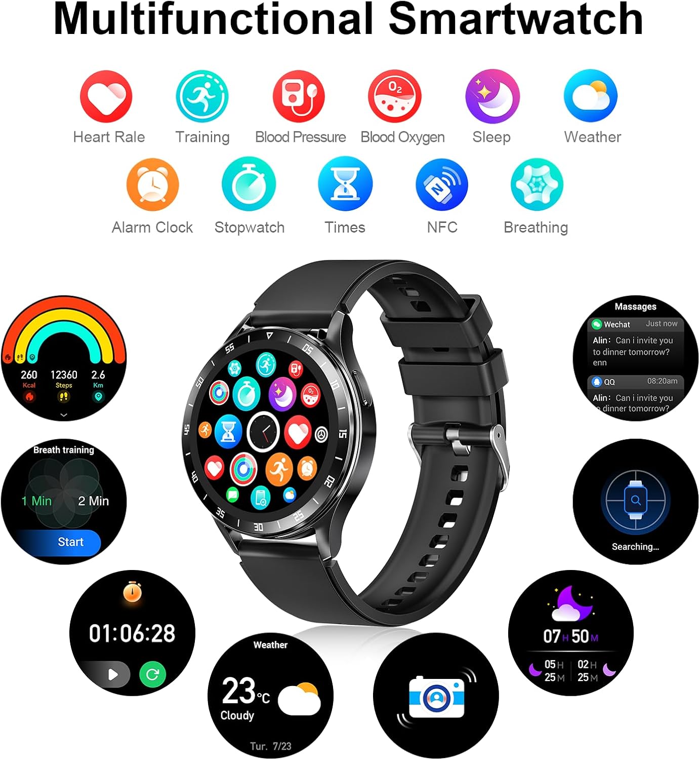 【COMPREHENSIVE HEALTH MANAGEMENT】This fitness watch supports 24-hour heart rate monitoring, and real-time blood pressure and blood oxygen detection. It will also automatically monitor your sleep status at night and provide comprehensive sleep quality analysis (deep sleep, light sleep, awake), and can also record your daily The number of steps, distance, and calories burned allow you to understand your physical condition better and develop healthy work and rest habits.
