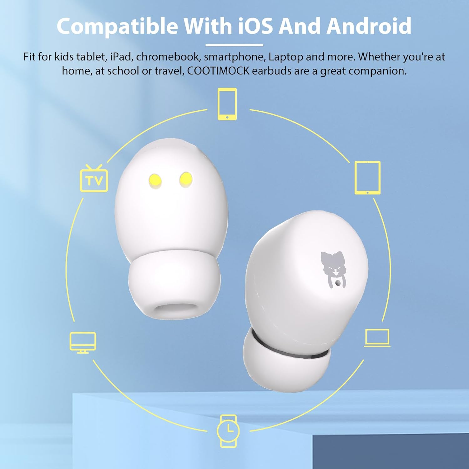 Safety First: COOTIMOCK wireless earbuds for kids utilizes sound refiner technology, which effectively limits the maximum volume to less than 85 decibels, reducing the risk of hearing damage for children and allowing them to enjoy music as they wish! In addition, the kids earbuds is made of safe material ABS, please use it with peace of mind. (Recommended for children 6 years old and above)