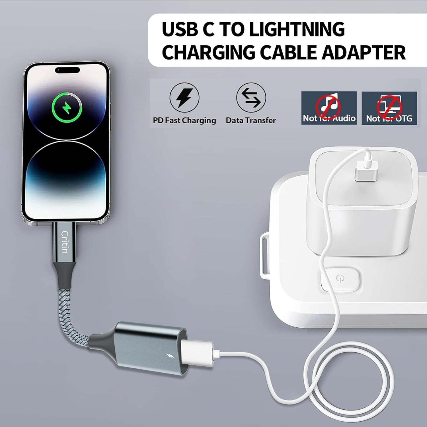 Critin USB C to Lightning Adapter for iPhone 15/15 Pro/15 Pro Max, iPad Pro, MacBook Pro | USB Type C Male to Lightning Female Converter | Fast Data Transfer | Durable Design (No Audio Support)