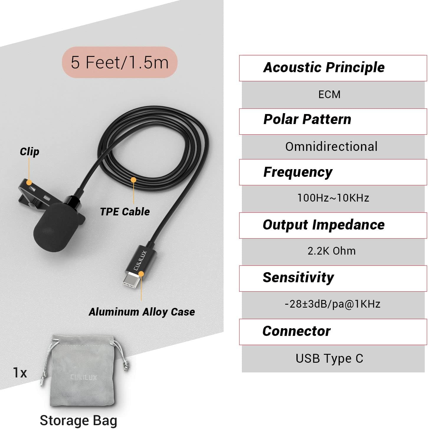 [Clear & Natural Sound] – Made with a high-sensitivity condenser, the Type C Microphone delivers a crystal-clean natural sound with ultra-low noise.