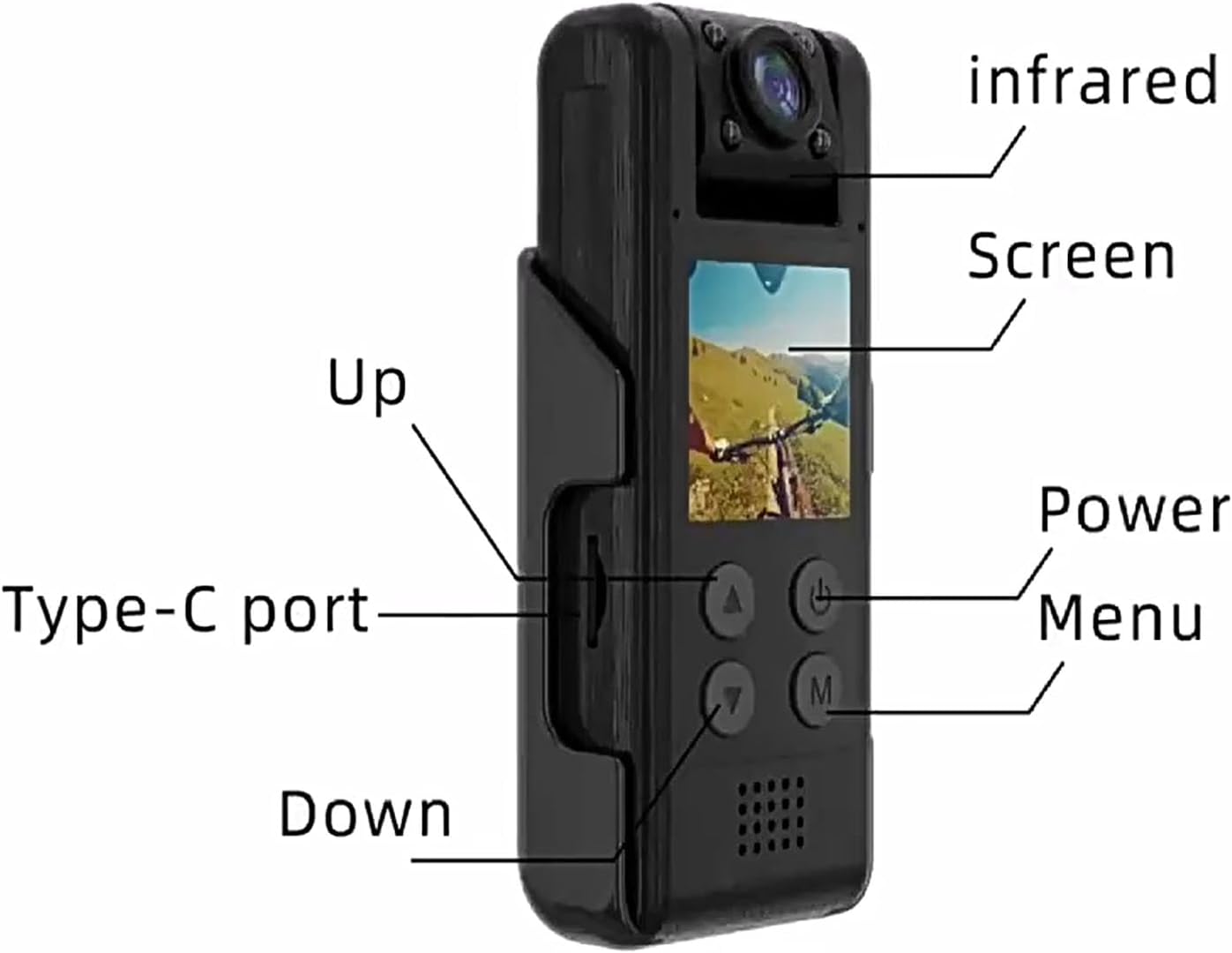 1.3 INCH LED SCREEN, HOTSPOT MODE: Body cam with 1.3 inch premium LED screen playback video. Convenient for instant playback and deletion of your footage. Provide detailed menu for your use. Provides inverted function screen switching mode and battery indicator, up to 10 minutes loop recording and time stamp setting. Hotspot mode helps you download recordings from your camera to your cell phone whenever and wherever you want. In addition, cardless or remote recording is supported (Limte 32ft)
