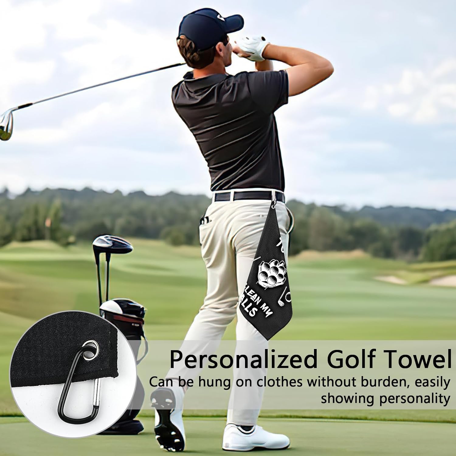 Deepton Golf Towel, Funny Golf Gifts for Men, Personalised Golf Towel Clean Golf Balls, Golf Accessories for Men, Novelty Golf Towels with Clip for Husband Boyfriend Dad Golfers (Black#1)