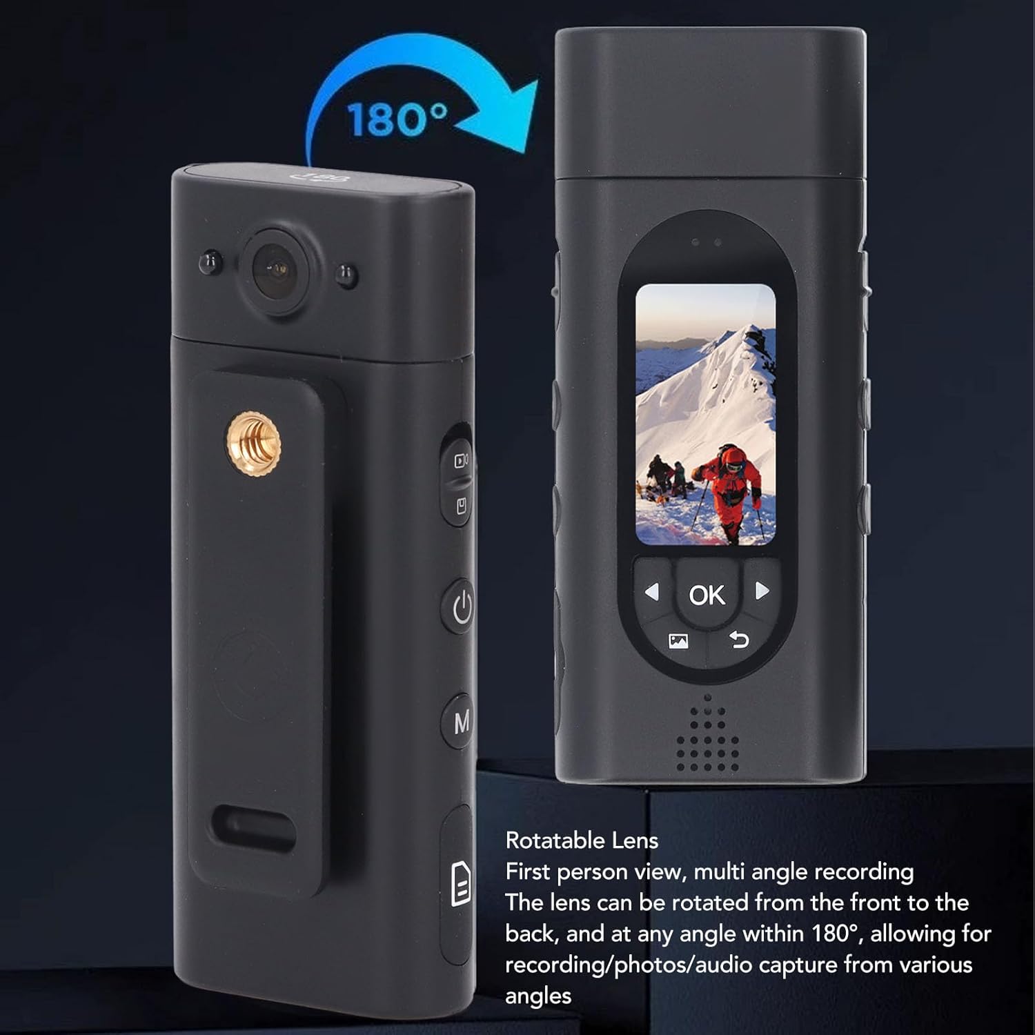 1080P HD VIDEO RECORDING: Equipped with a high definition image sensor and a large aperture, this body worn camera delivers crisp and rich imagery with enhanced clarity. The 180 degree rotating lens allows for versatile shooting angles without missing any details.