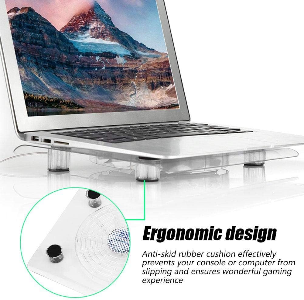 【Super Performance】 This laptop cooling pad has a precise tuyere design. The wind blows up directly to the console or your laptop, and the fan spinning up to 1400 rotations per minute. The laptop cooler helps to protect the laptop from overheating, resulting in battery performance degradation, battery overheating or processor burnout.