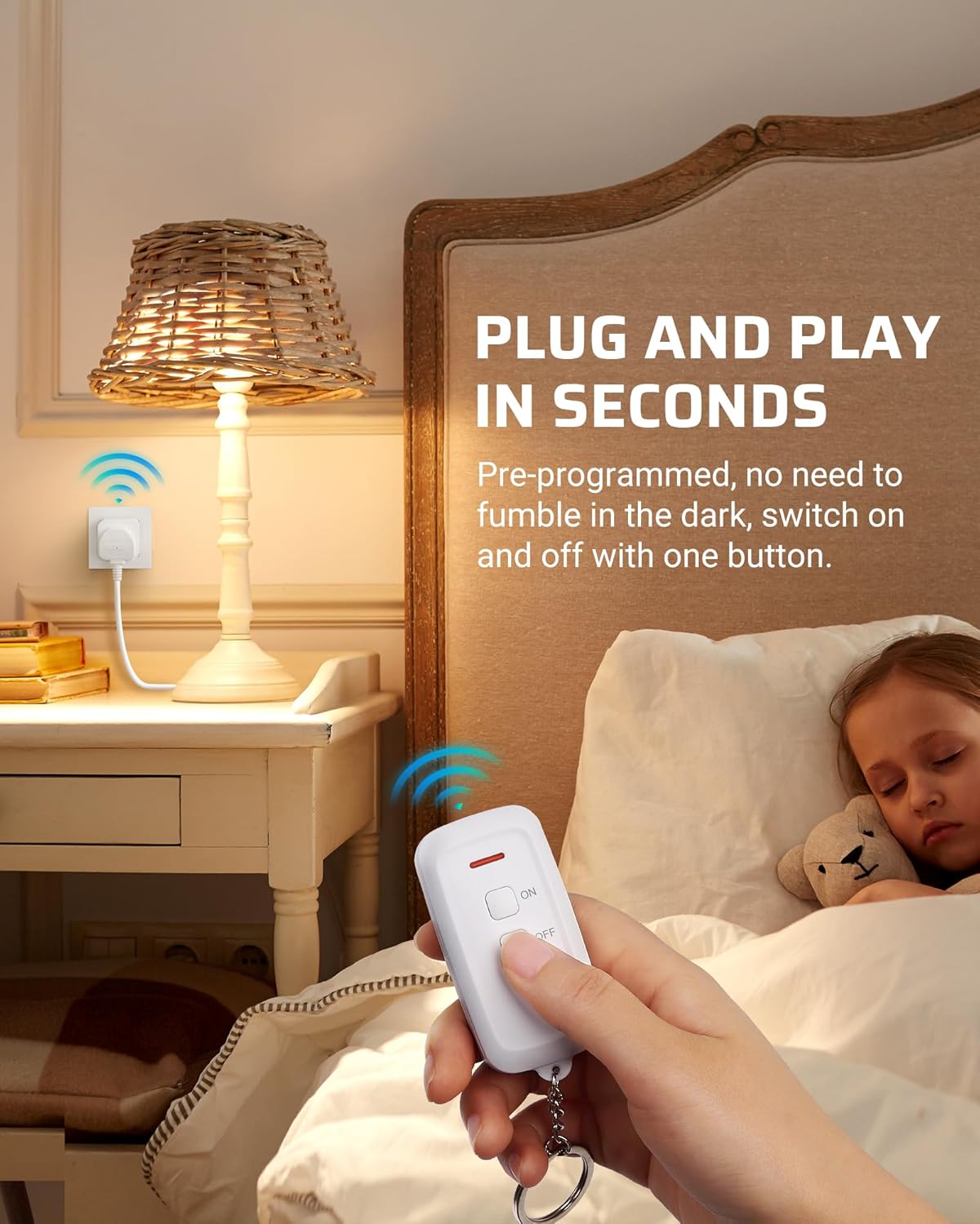 [Simply Plug-in & Compact Size] No need for programming or tools, just press the ON/OFF button to control hard-to-reach sockets and other home appliances from a distance; great for elderly, pregnant women, and people with limited mobility or back pain; occupies 1 wall socket only, this wireless remote control light switch is easily installed in tight spaces and behind furniture