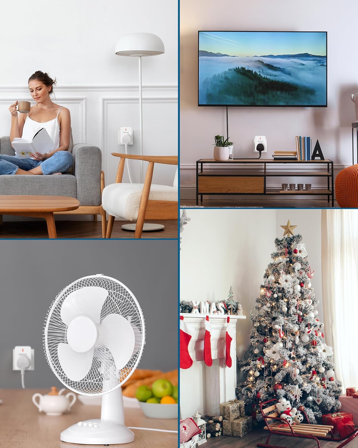 [Energy Saving & Safety] With included 3V/CR2032 battery, long-life and energy-efficient, compact design won’t block other sockets; ideal for Christmas lights, Vac, TVs, table lamps, bedside lamps, floor lamps, fans, and other household appliances; built-in safety door in each socket prevents children from inserting fingers or other objects