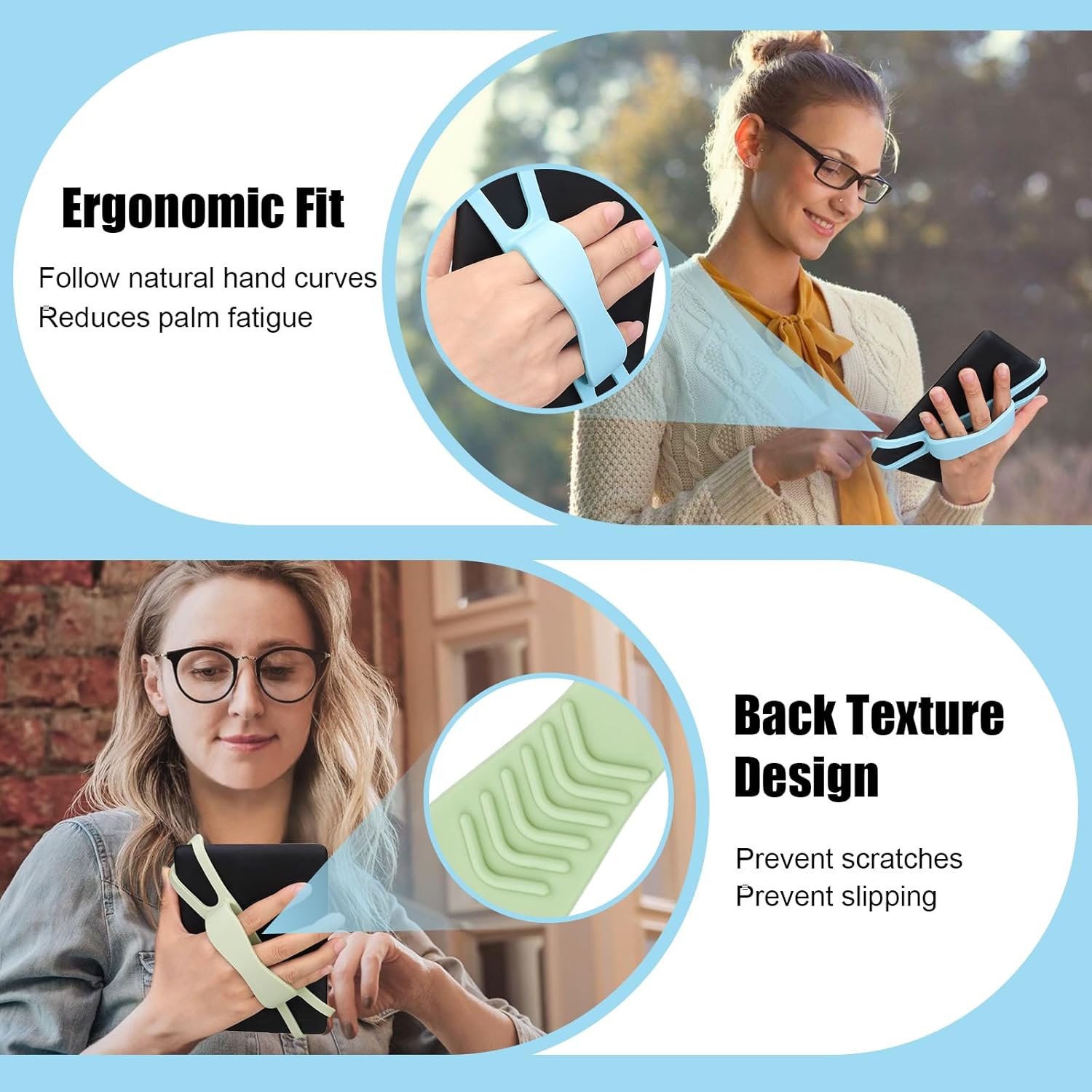 Dexspoeny 2 Pack Silicone Hand Straps for Kindle and Tablets, Secure Lightweight Finger Grip Holder for 4.7-8″ Kindle Paperwhite/iPad/Samsung/Kobo/Oasis/Fire/Sony/Lenovo E-Readers (Blue+Green)