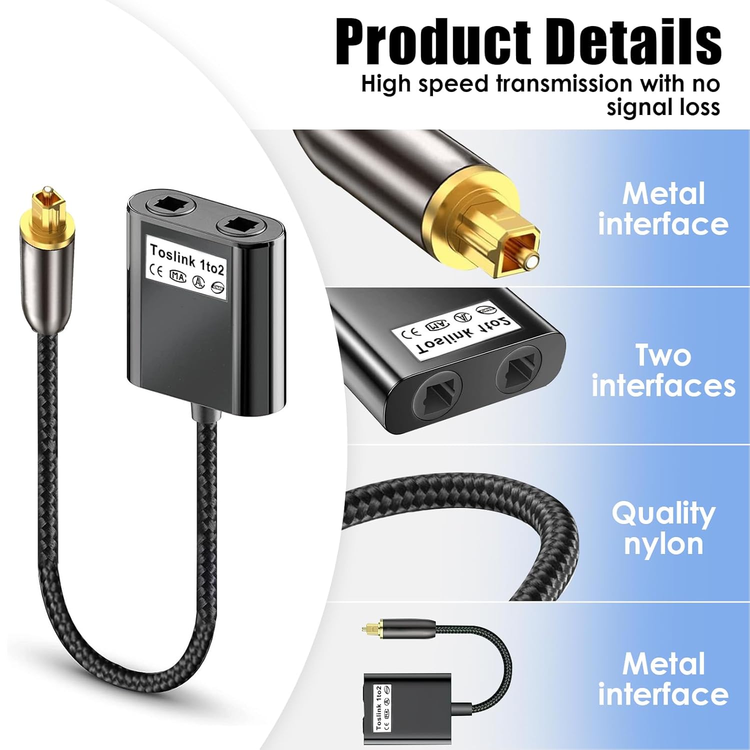 User-friendly and easy to operate, the digital optical audio cable splitter is plug-and-play, with no need for additional software or batteries. It’s designed for low power consumption and supports multiple device connections, making it a versatile addition to your audio setup.
