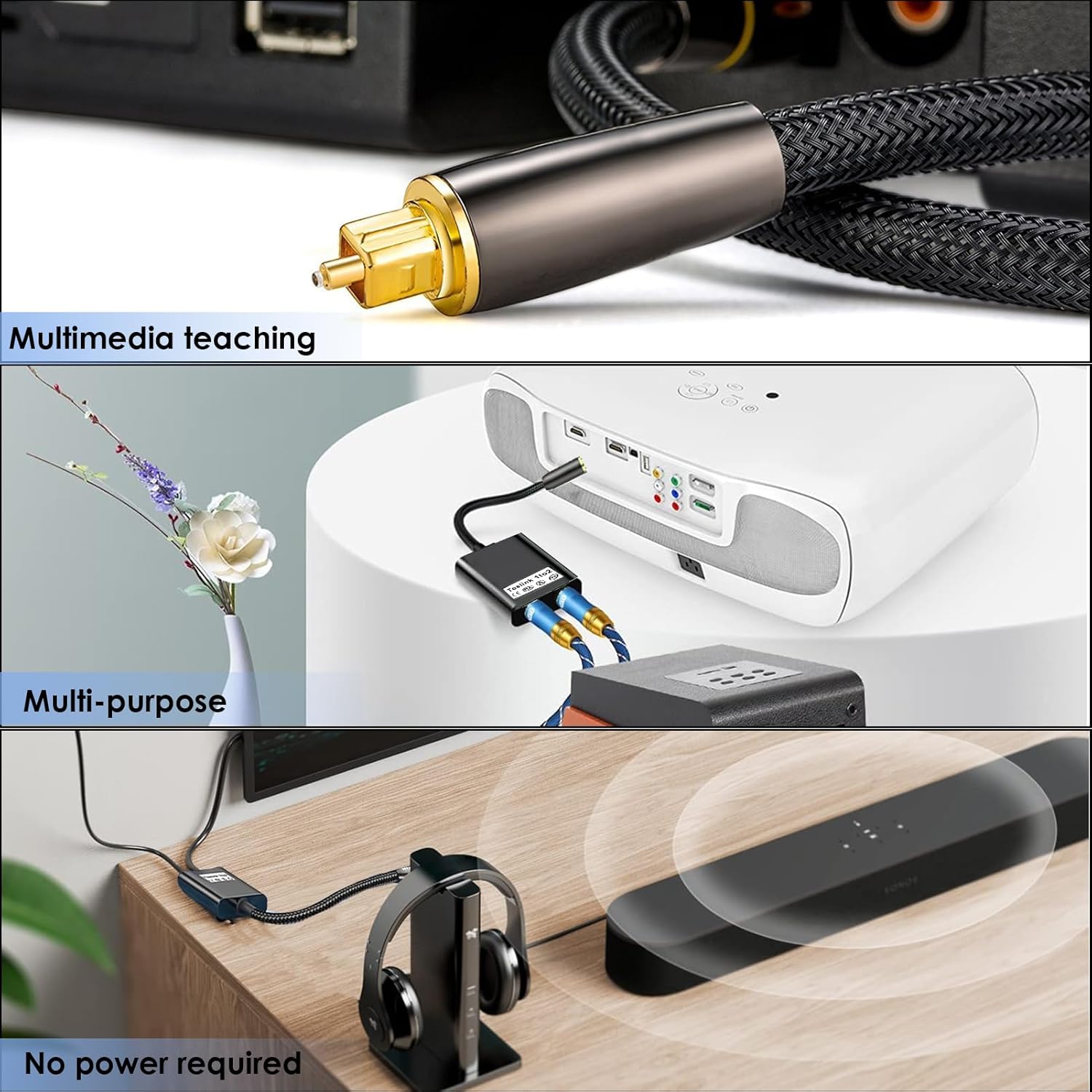 Easy to Operate: The digital optical audio cable splitter is plug-and-play, with no need for additional software or batteries. It’s designed for low power consumption and supports multiple device connections, making it a versatile addition to your audio setup.