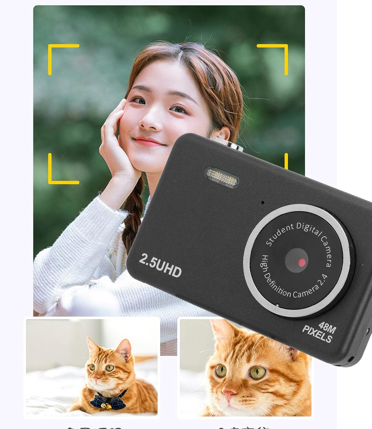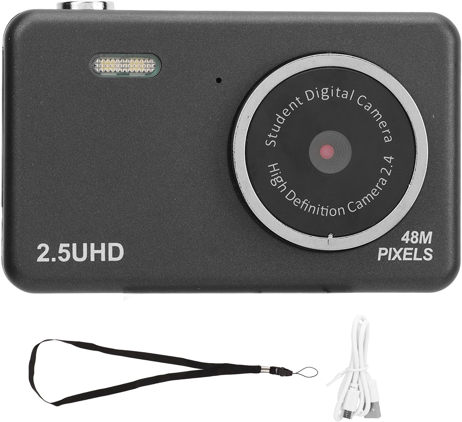 Digital Camera, 48MP 2.5K 2.4 Inch HD Screen Digital Point and Shoot Camera, 8X Zoom Anti Shake, Dual Lens Selfie Camera for Student Christmas Birthday Gifts (Black)