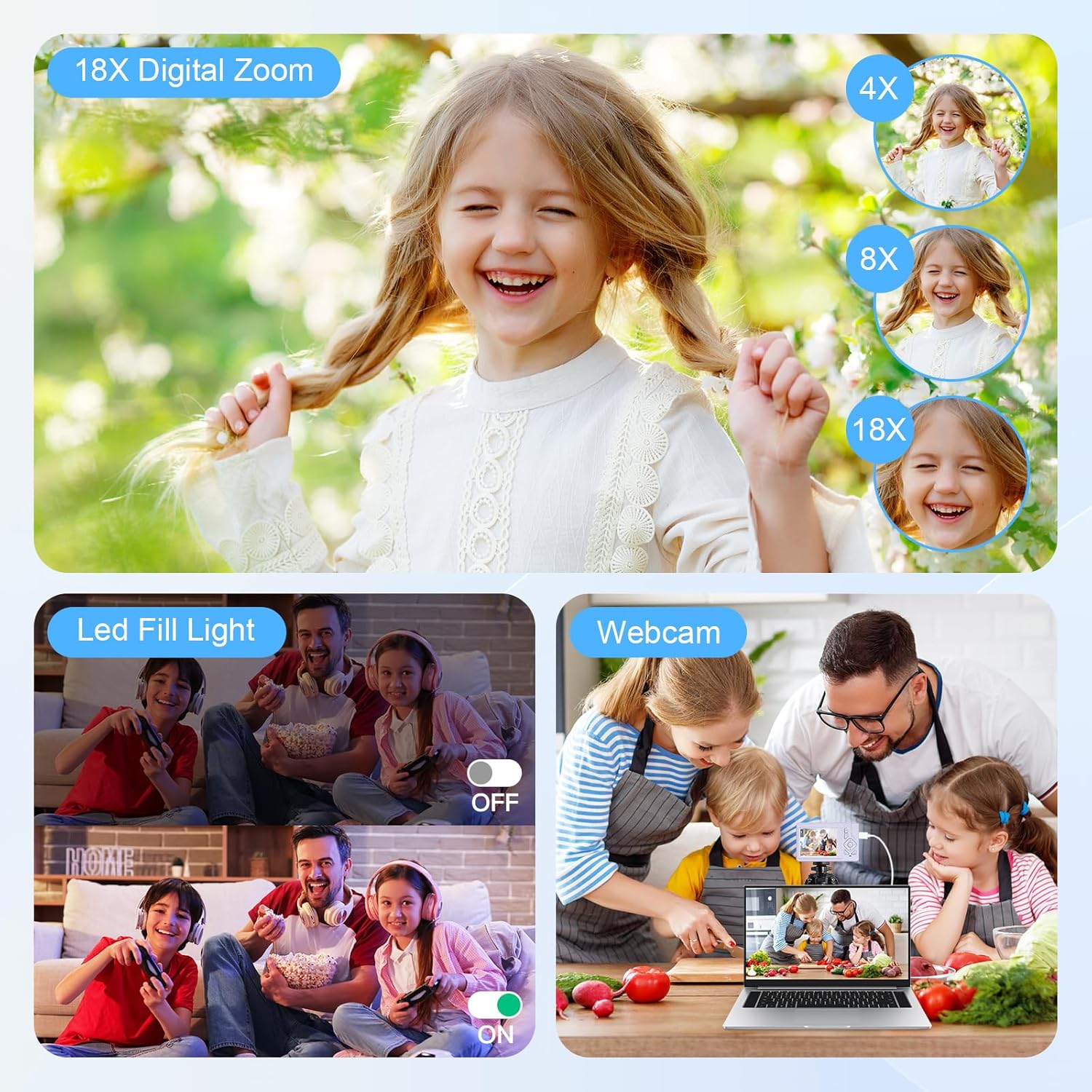 18X Digital Zoom: This point-and-shoot digital camera has upgraded autofocus function to ensure that the photos taken are no longer blurred or out of focus, so you won’t miss any fascinating moments. The powerful 18x digital zoom allows you to capture clear images even from a distance, bringing you a unique photographic experience.