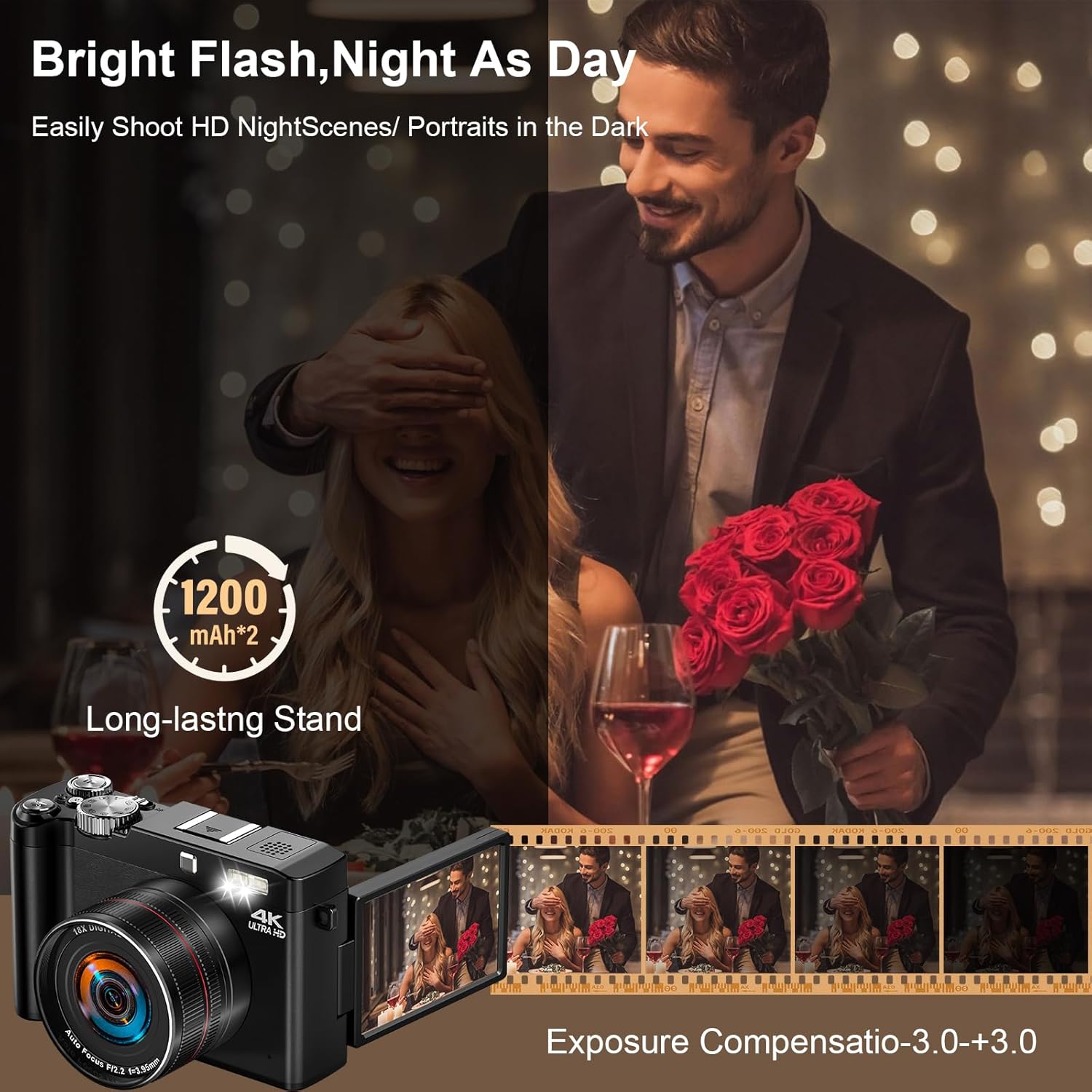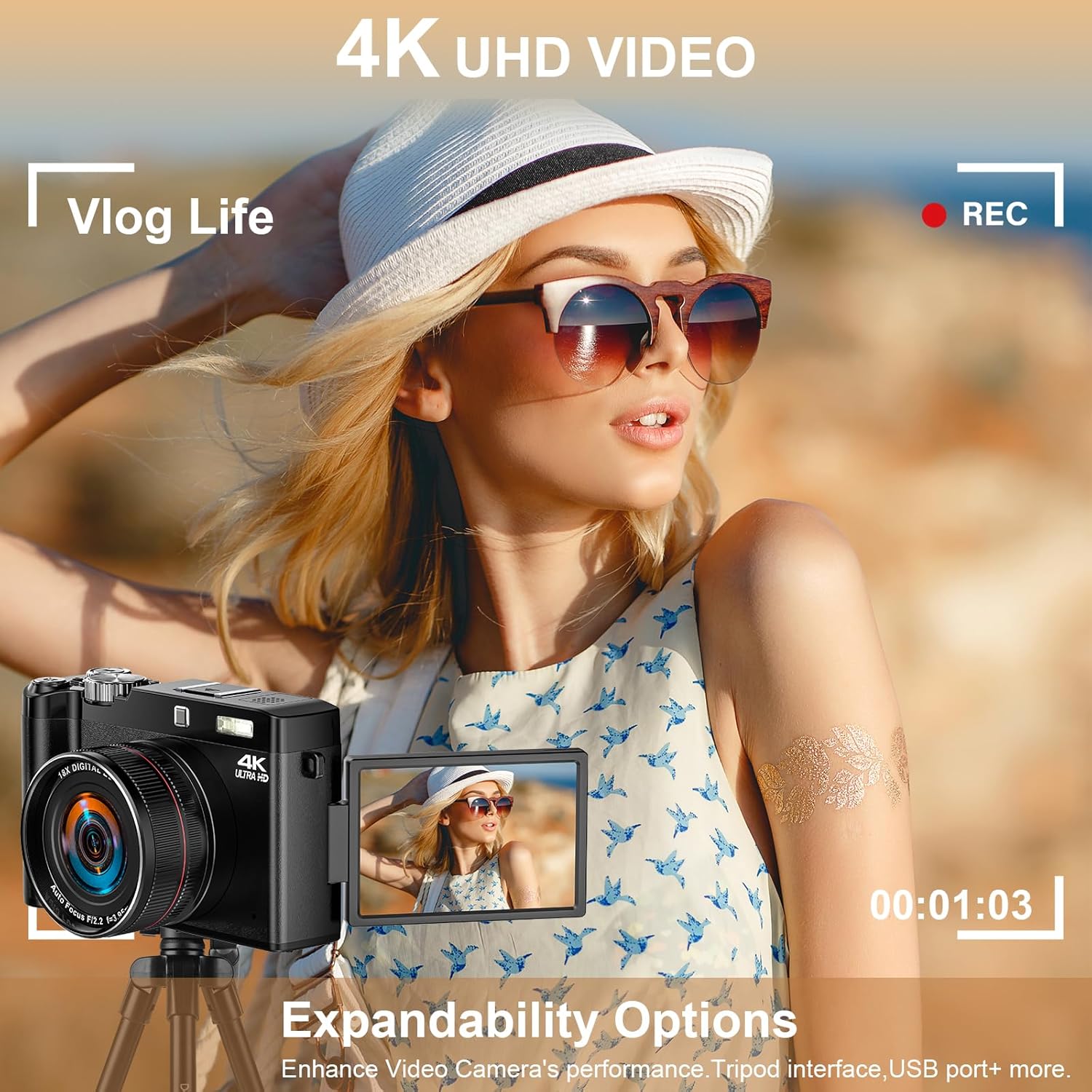 I recently got this camera with a decent price and I’m really enjoying it. The 4K video and 64MP photos are super impressive, they capture every detail beautifully. The flip screen is perfect for selfies and vlogging, making it really easy to get the shot you want. Plus, it comes with a 32GB card and two batteries, so youâre ready to go right out of the box without any extra fuss.