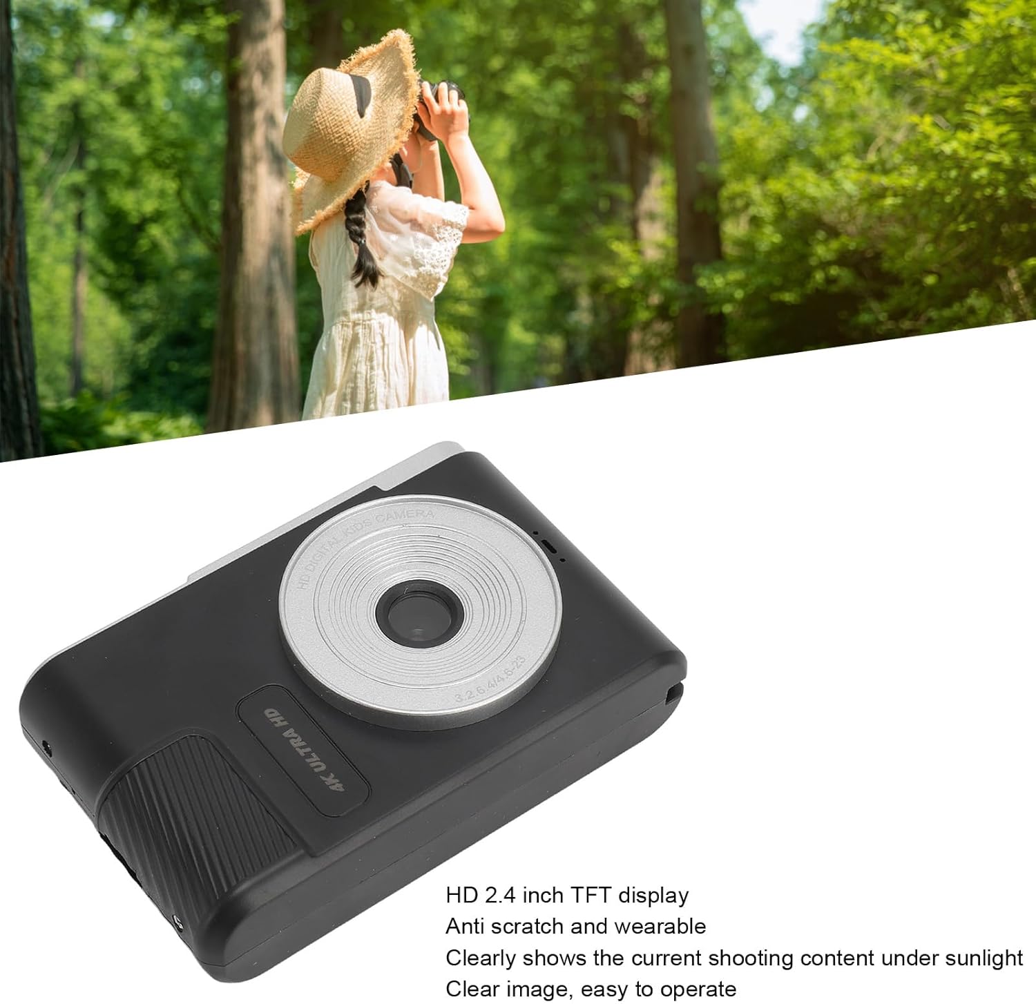 Digital Camera 4K,48MP 16x Digital Zoom 2.4 Inch Screen,Portable Compact Camera for Kids Students Vlog (Black)