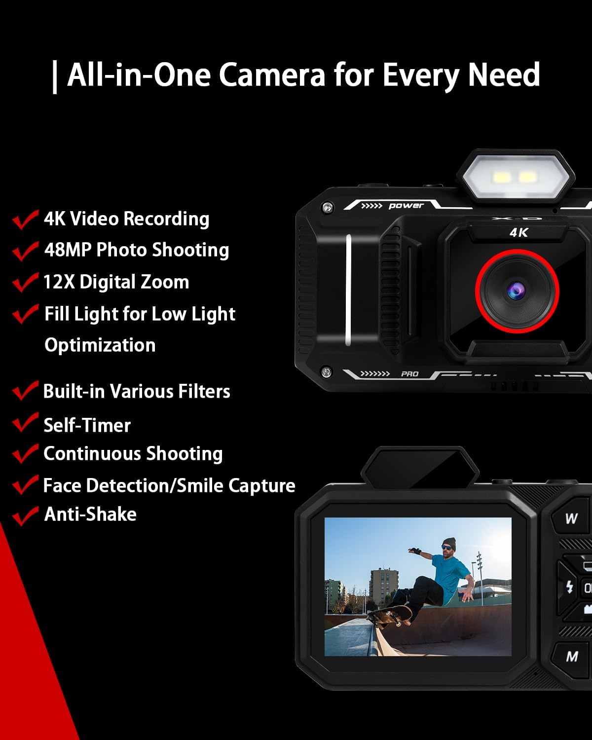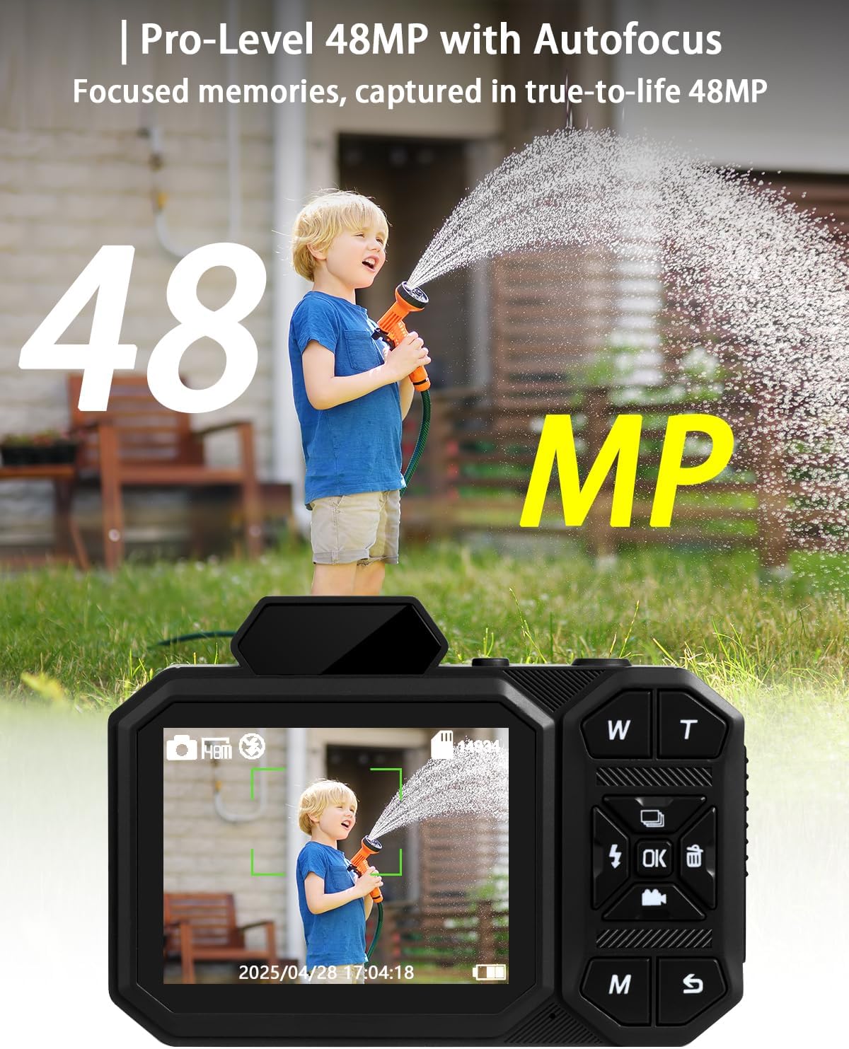 【4K & 48MP Digital Camera】 This digital camera features 4K UHD video recording and a high-resolution 48MP sensor, delivering sharp, vibrant images and crystal-clear video. Equipped with a 2.88″ HD IPS screen, it lets you clearly see every detail of your shots. Compact, easy-to-use design, perfect for beginners. An ideal gift for teens or anyone ready to explore their creativity behind the lens.