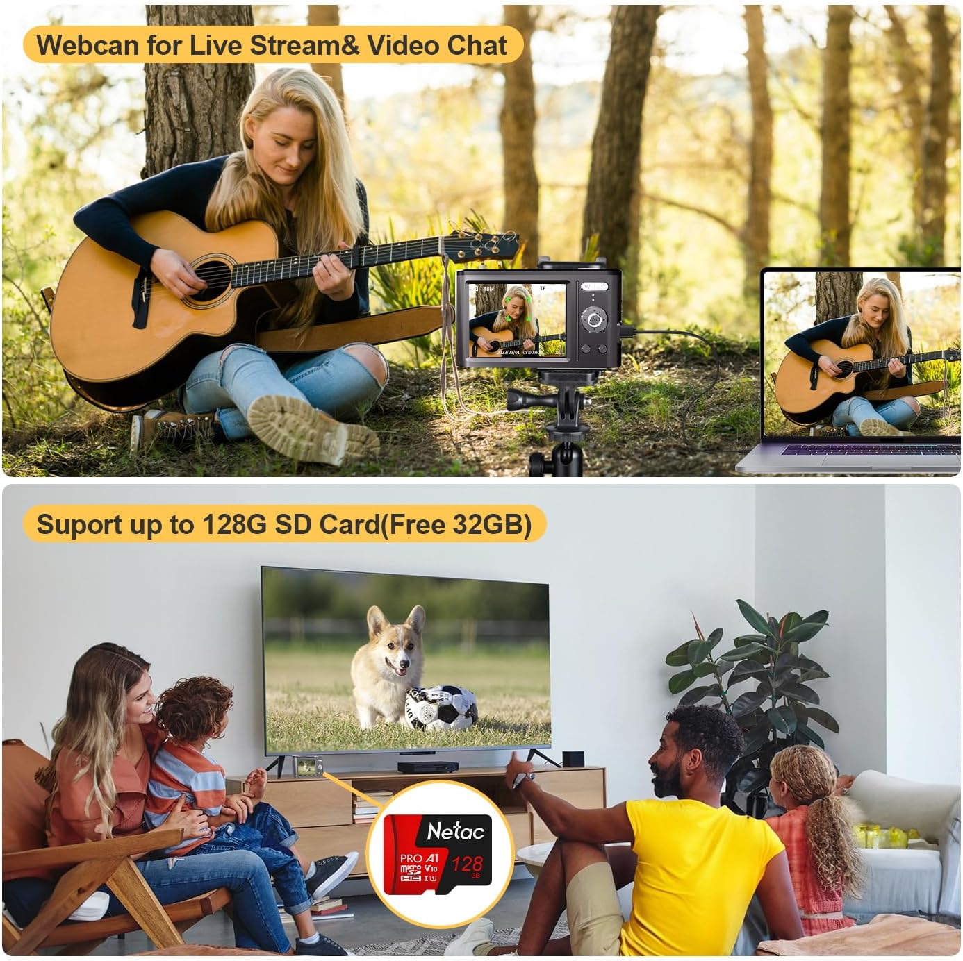 The Compact Camera is a technological marvel that combines cutting-edge features with a compact design, making it an exceptional choice for both amateur photographers and seasoned vloggers. With 1080P photo capabilities, 48MP resolution, 18x zoom, and a generous bundle including a free 32GB SD card, this camera is ready to capture your every moment.Pros:Stunning 4K HD Video:The camera’s 4K HD video capability ensures your vlogs and memories are recorded in vivid detail. The clarity and color reproduction are exceptional, providing a professional touch to your video content.High-Resolution 48MP Photos:For photography enthusiasts, the 48MP resolution delivers sharp, detailed images. From scenic landscapes to up-close portraits, this camera excels in capturing the essence of the moment.Versatile 18x Zoom:The 18x zoom opens up new possibilities for creative shots, allowing you to capture subjects from a distance without compromising image quality. Ideal for wildlife photography or capturing events from afar.Compact and Portable Design:The camera’s small and lightweight design makes it a perfect on-the-go companion. Slip it into your pocket or bag, and you’re ready to capture spontaneous moments wherever you go.User-Friendly LCD Screen:The LCD screen provides a clear and intuitive interface for framing shots, reviewing footage, and navigating settings. It’s a valuable tool for ensuring you capture the perfect shot every time.Complete Vlogging Bundle:The inclusion of a free 32GB SD card means you can start shooting immediately without worrying about storage. It’s a thoughtful addition that enhances the camera’s out-of-the-box usability.Cons:It’s challenging to find significant drawbacks with this camera, given its feature-rich design and compact form factor. However, users may need some time to familiarize themselves with the various settings and options.It is a game-changer in the world of compact digital cameras. Whether you’re a vlogger, photographer, or someone who simply loves capturing life’s moments in stunning detail, this camera delivers on all fronts. With 4K video, high-resolution photos, versatile zoom, and a user-friendly design, it’s a complete package that exceeds expectations. For those seeking a reliable and feature-packed digital camera, this compact powerhouse is a top-tier choice